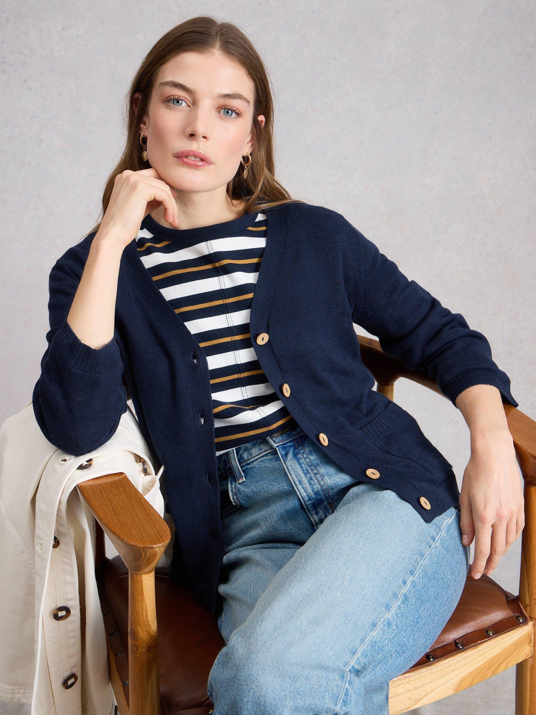Slipping on for easy layering, this cardigan from White Stuff is constructed from a super-soft cotton-blend.