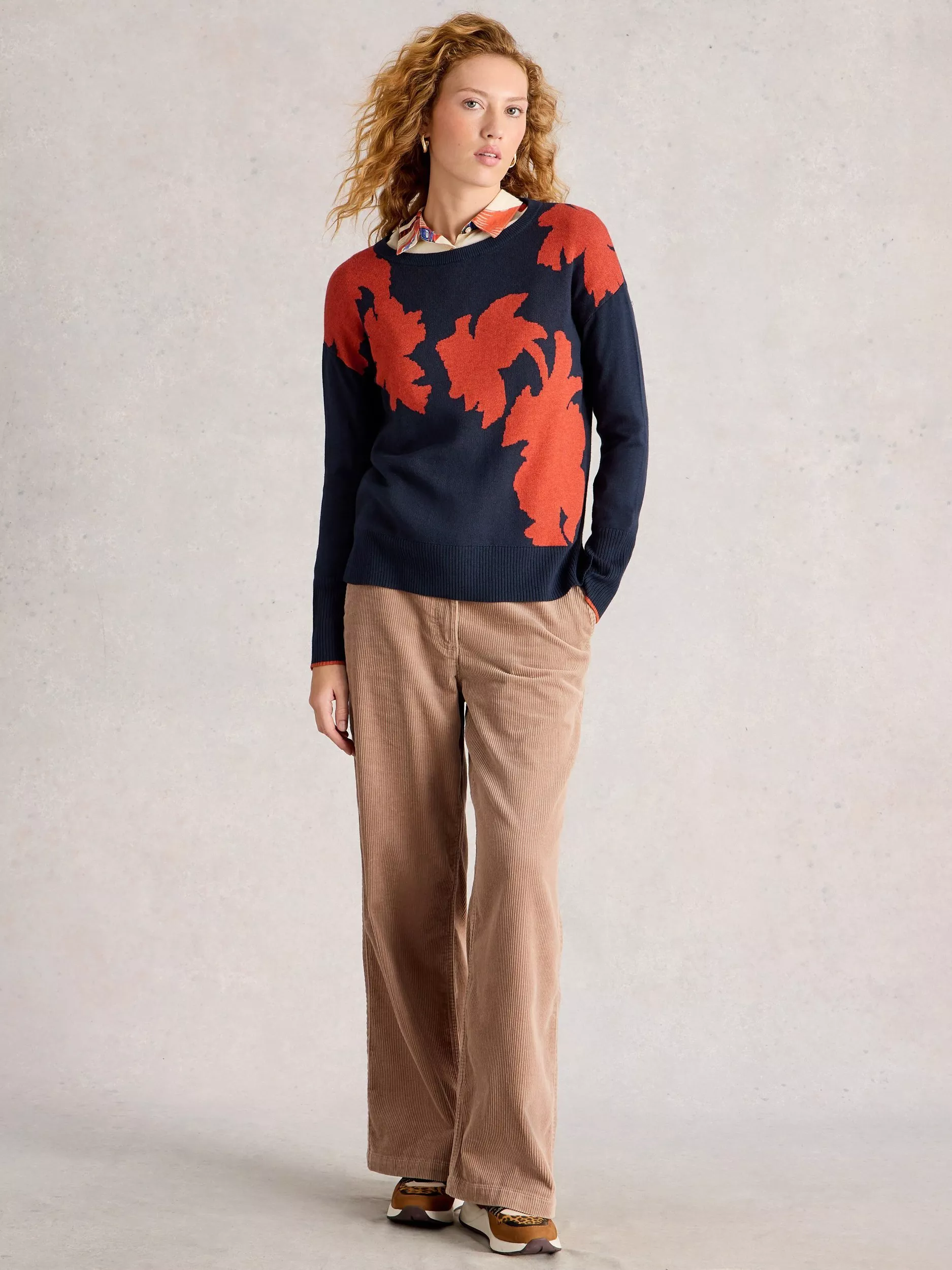 Created using a soft cotton blend, this mid-weight crew neck jumper from White Stuff features an eye-catching floral printed design.