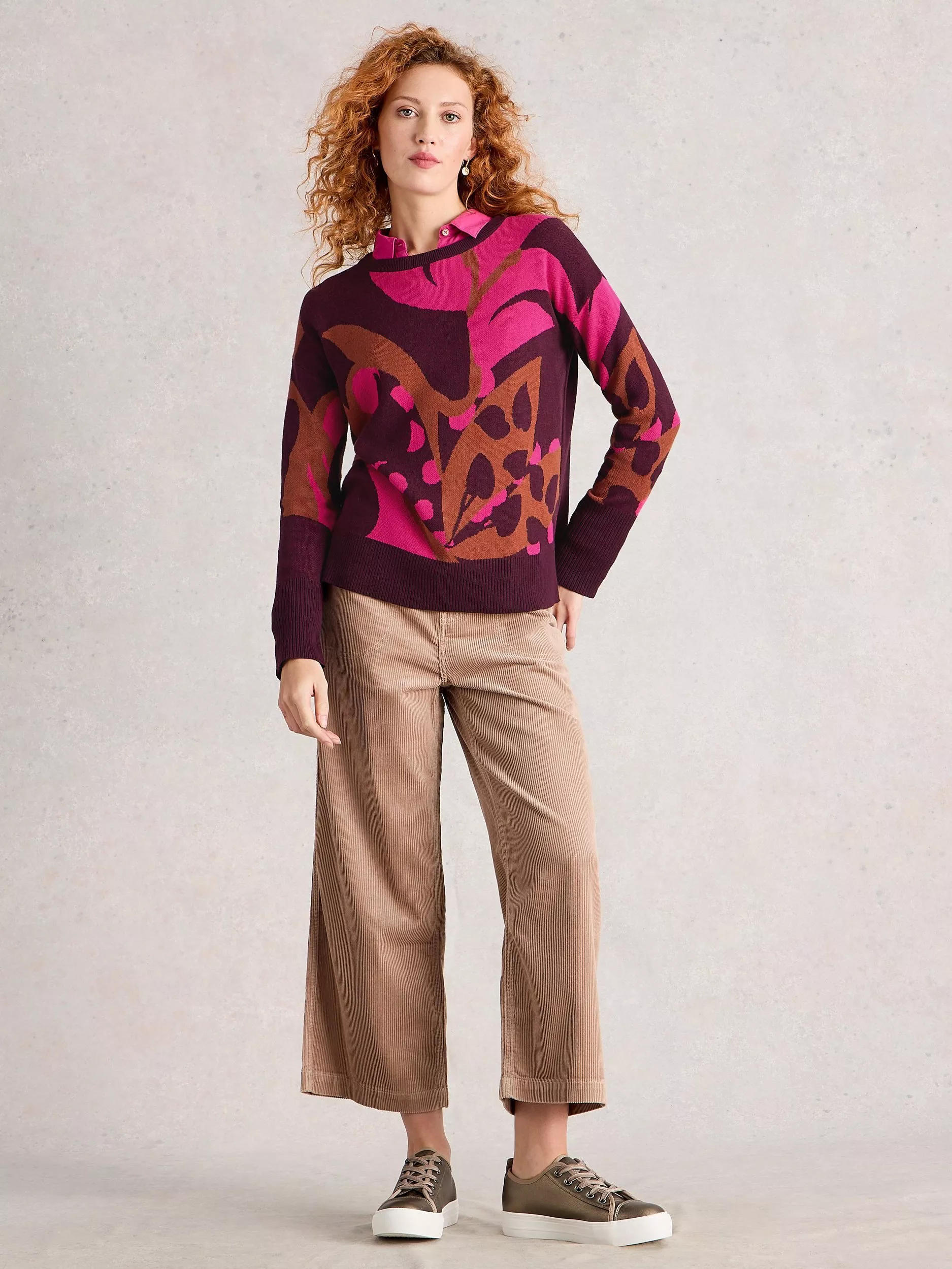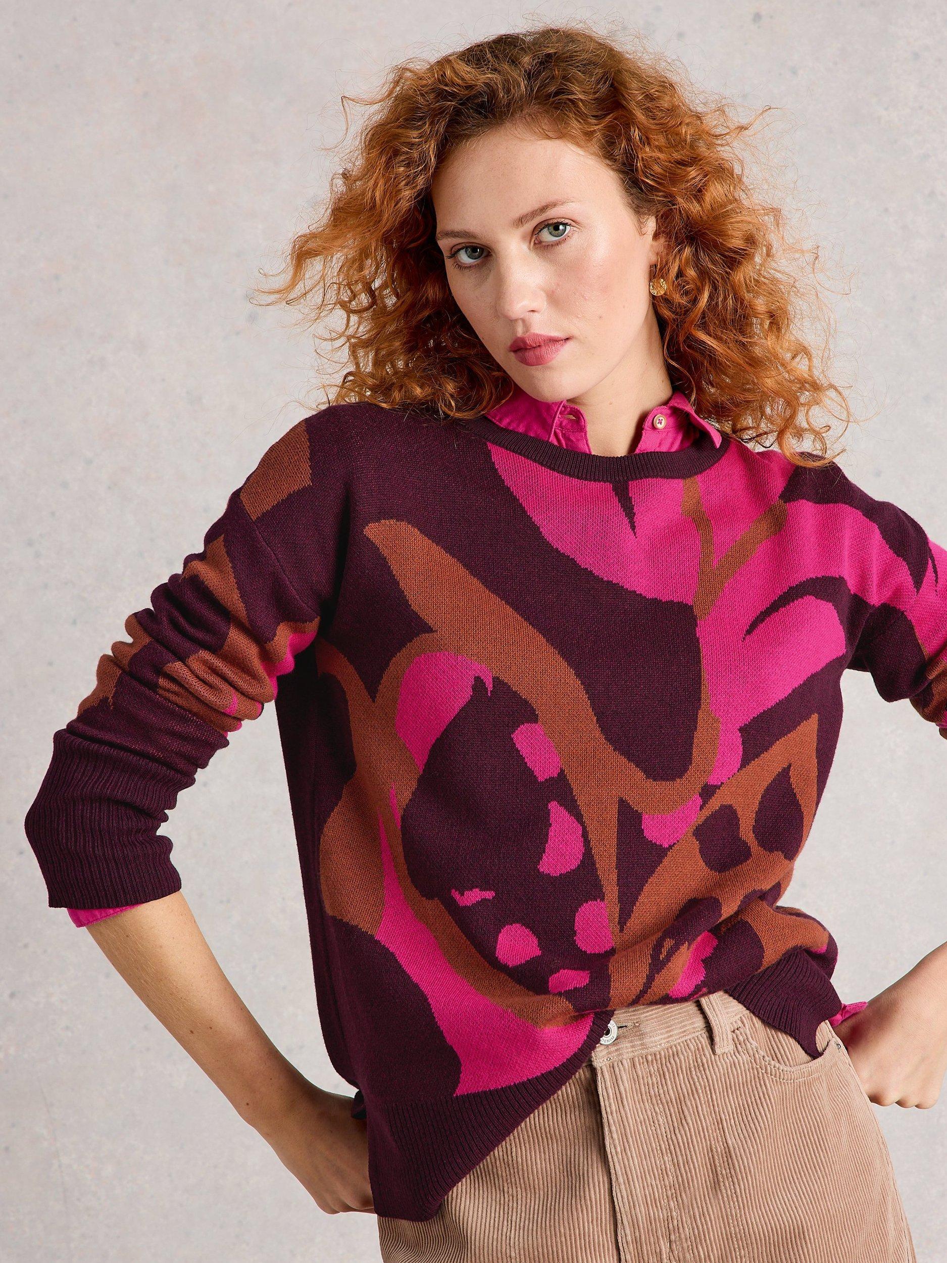This jumper combines a regular fit with an abstract pattern for a clever twist on everyday comfort. Its medium-weight knit and soft cotton blend help you stay relaxed and sharp.