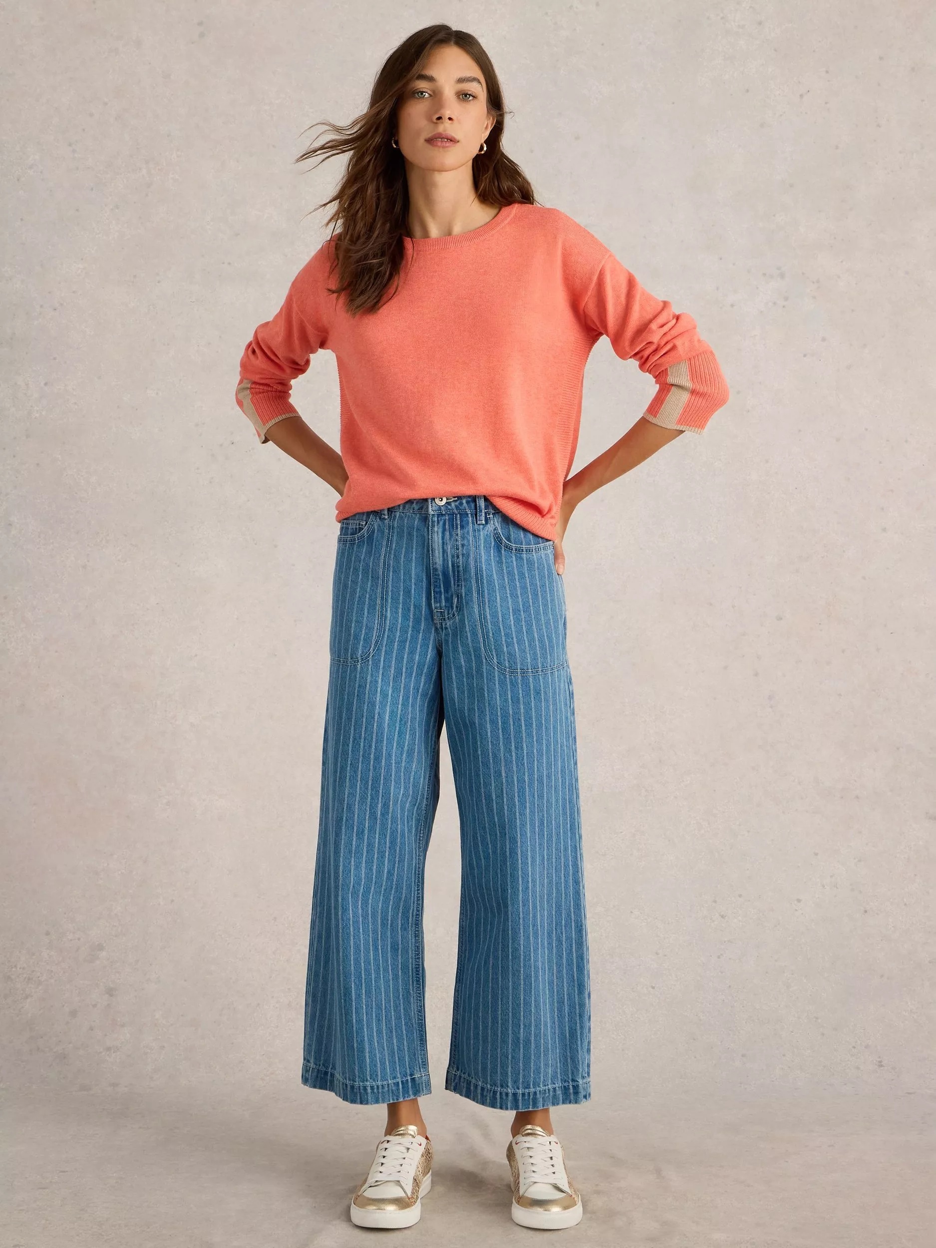 A casual round neck jumper with dropped shoulders.