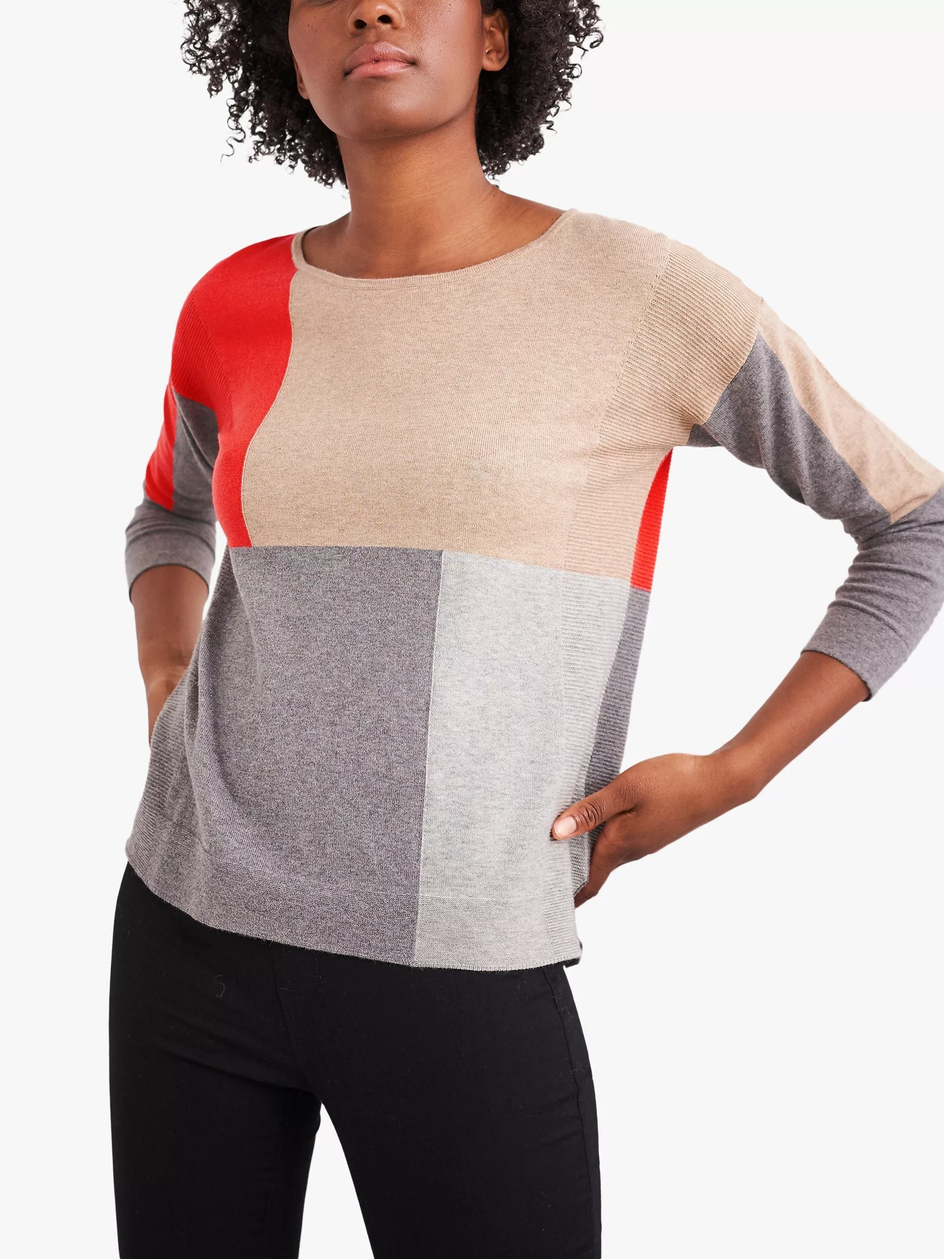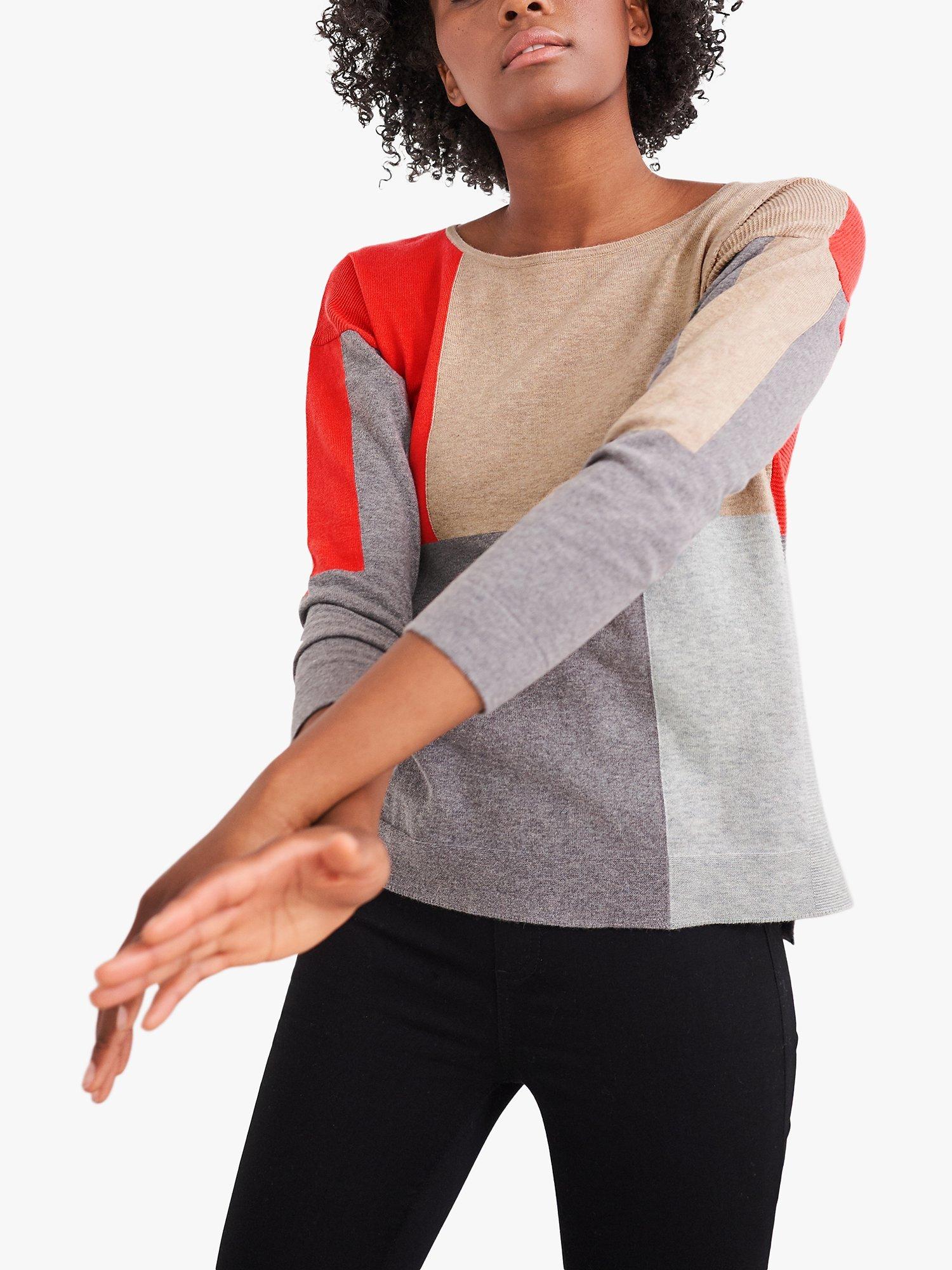 Framed with a sleek neckline, this colour block jumper by White Stuff is cut from cotton inbued with merino wool for warm, yet breathable wear. Designed in a slouchy fit with drop shoulders and rib detail at the cuffs and hem, its perfect for throwing over jeans and brightening up chilly days.