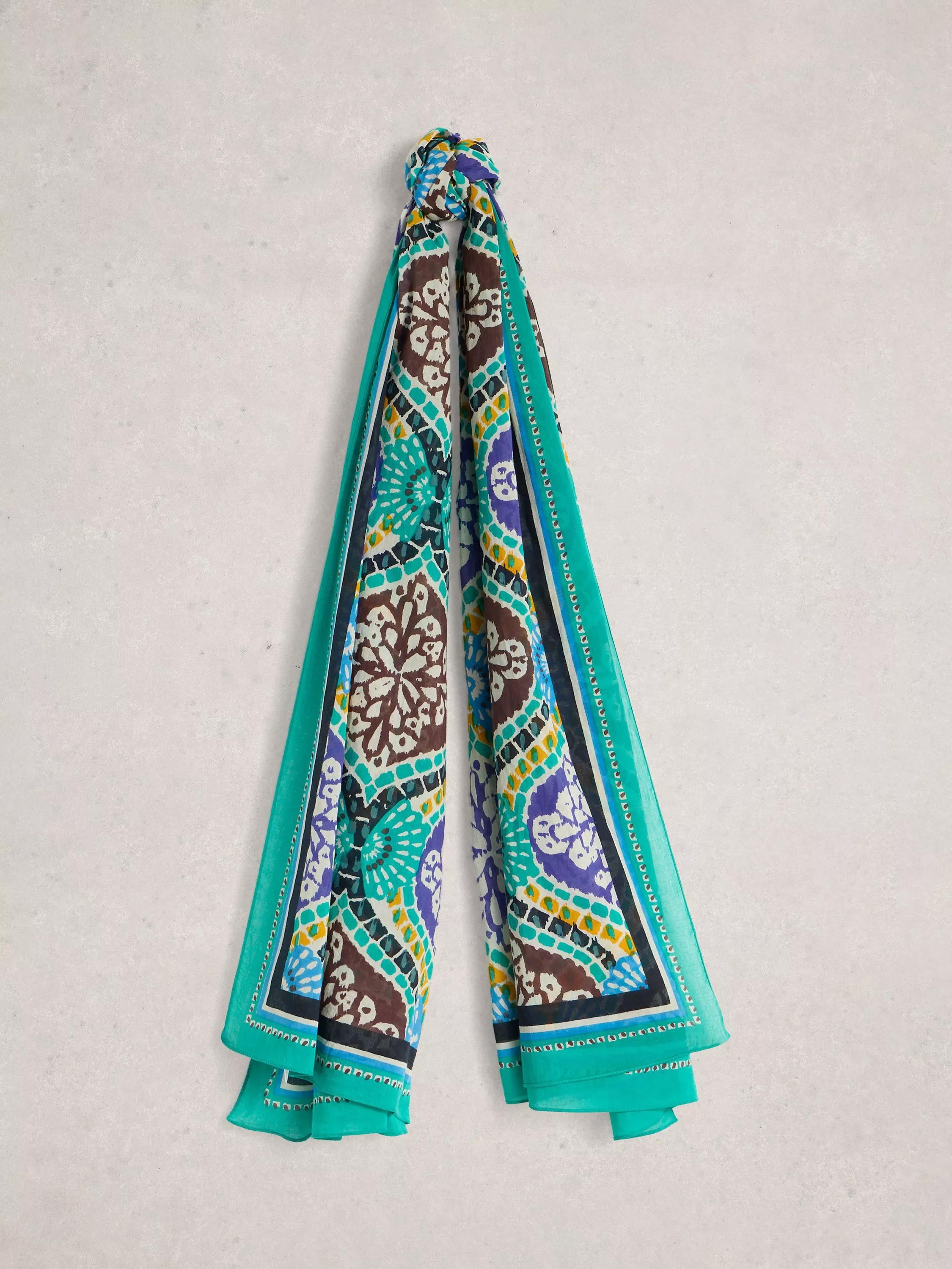 White StuffOrganic Cotton Scarf, Blue/Multi