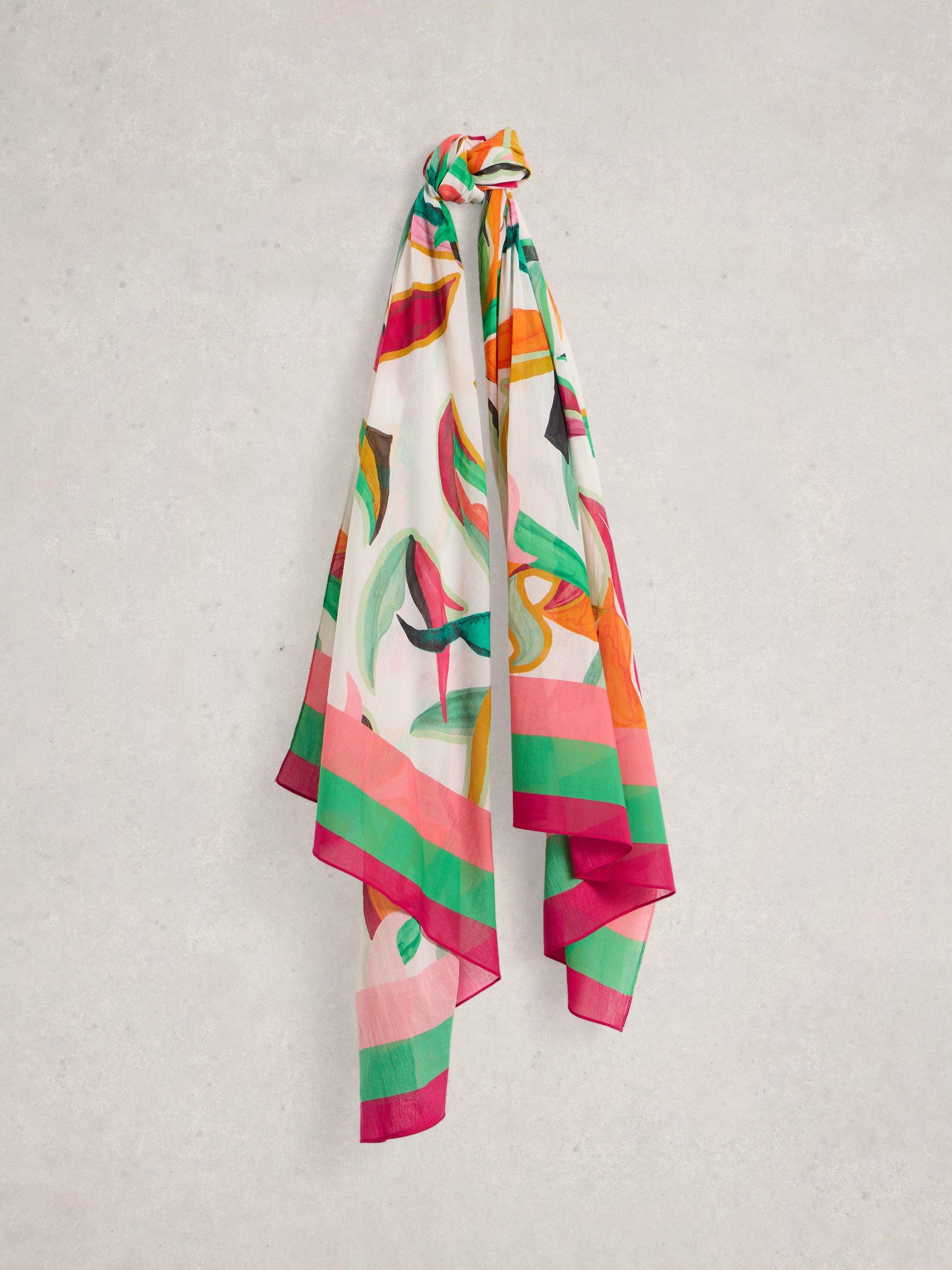 This soft 100% cotton scarf brings a lively abstract touch to your look, offering comfort against your skin and versatile layering for any occasion.