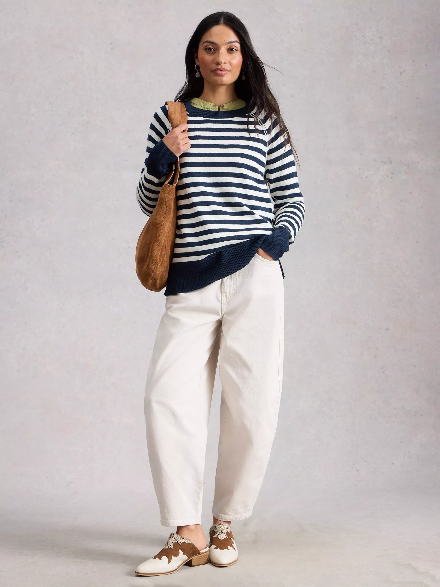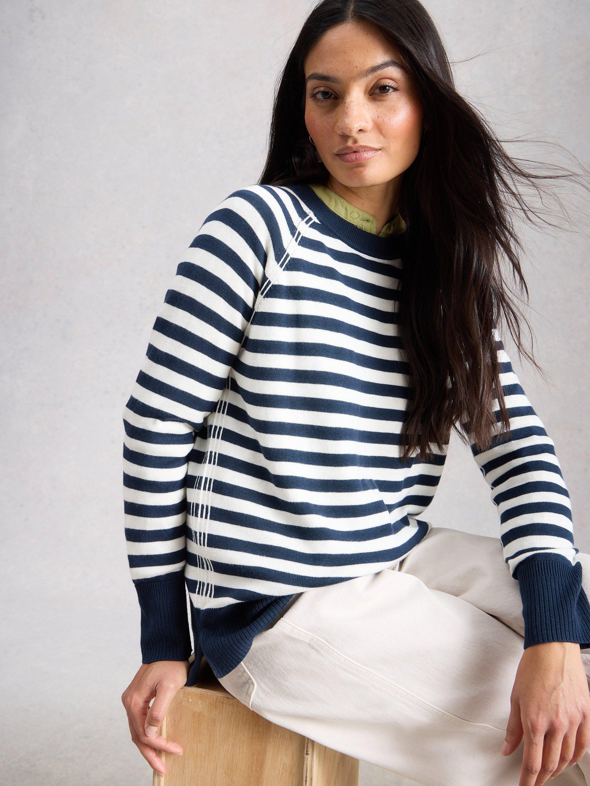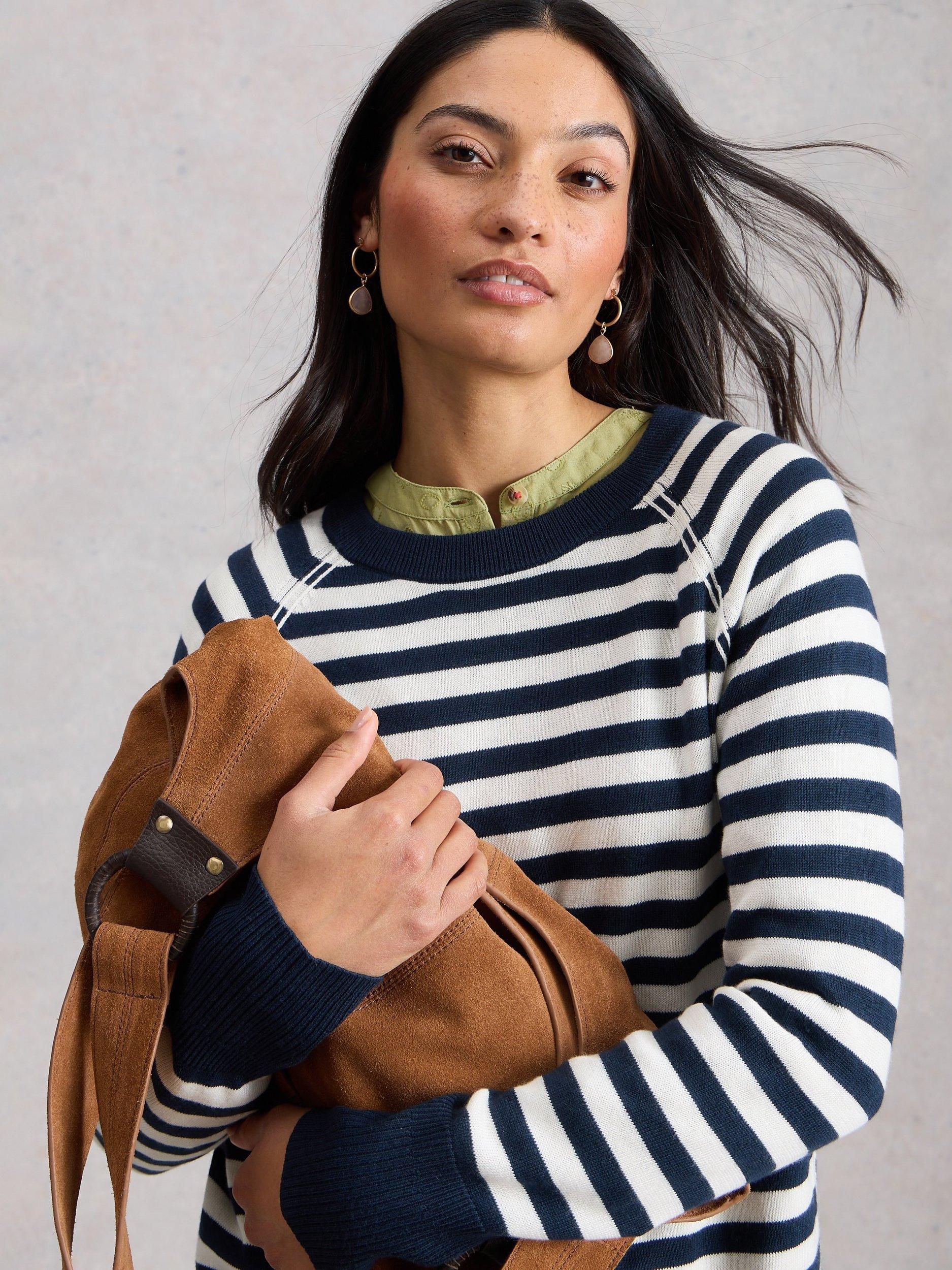 A striped long-sleeve tunic for an easy style upgrade. Soft and lightweight, this longline knitted style brings comfort to busy days. Wear yours layered or solo.