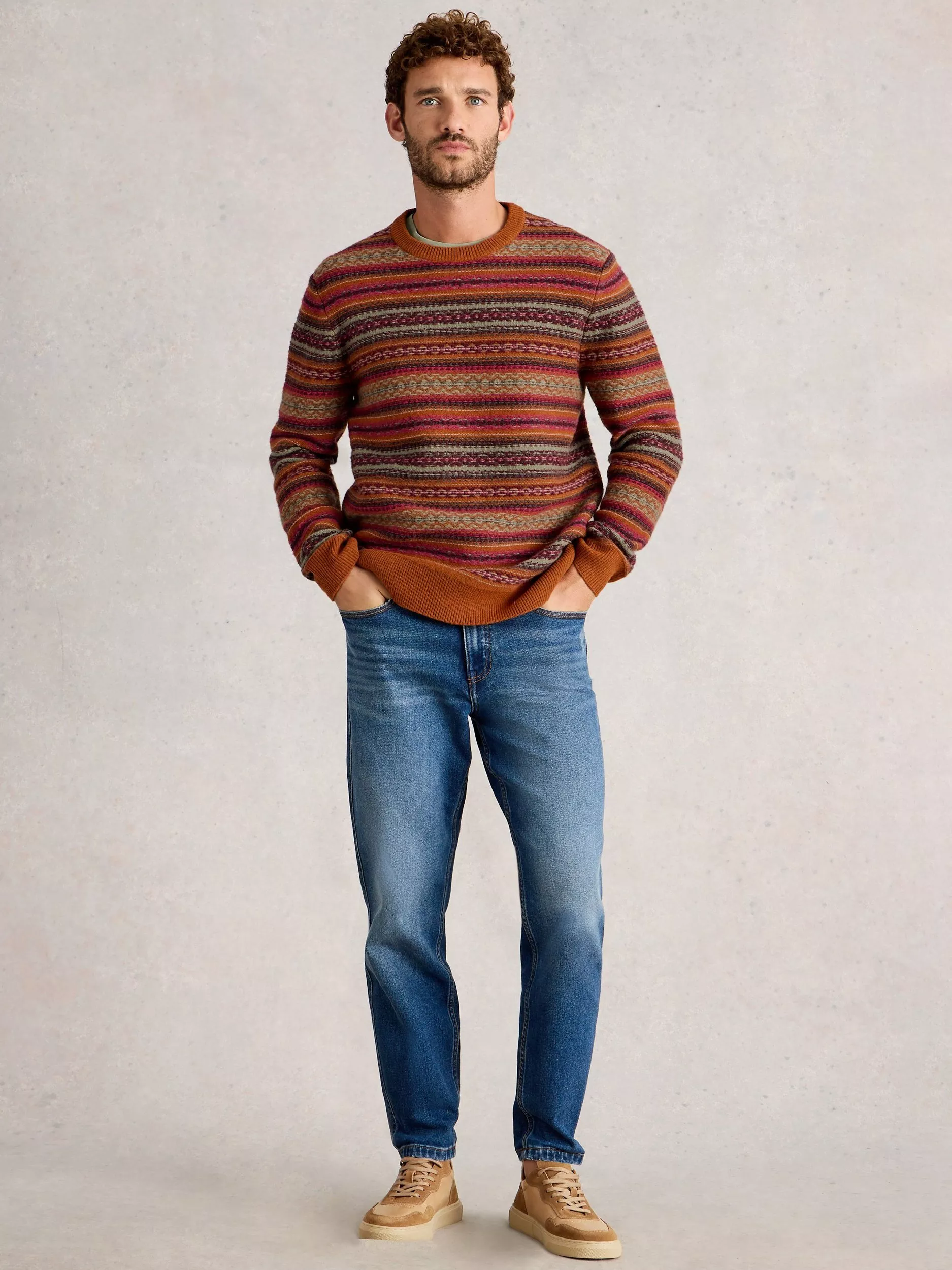 Pulling on easily in cooler climes, this crew neck knit from White Stuff is kept classic with timeless fair isle and is made from a lambswool blend.