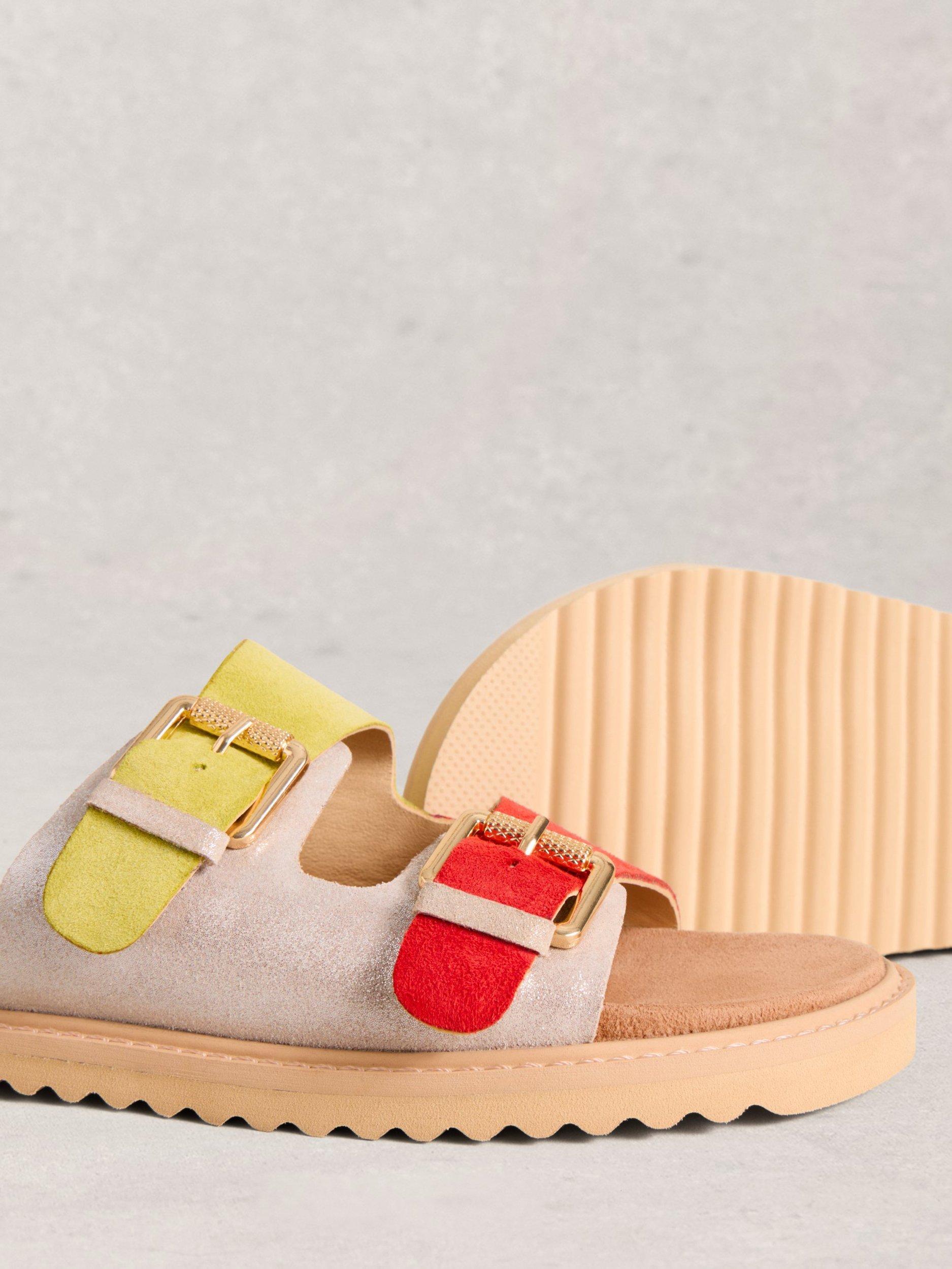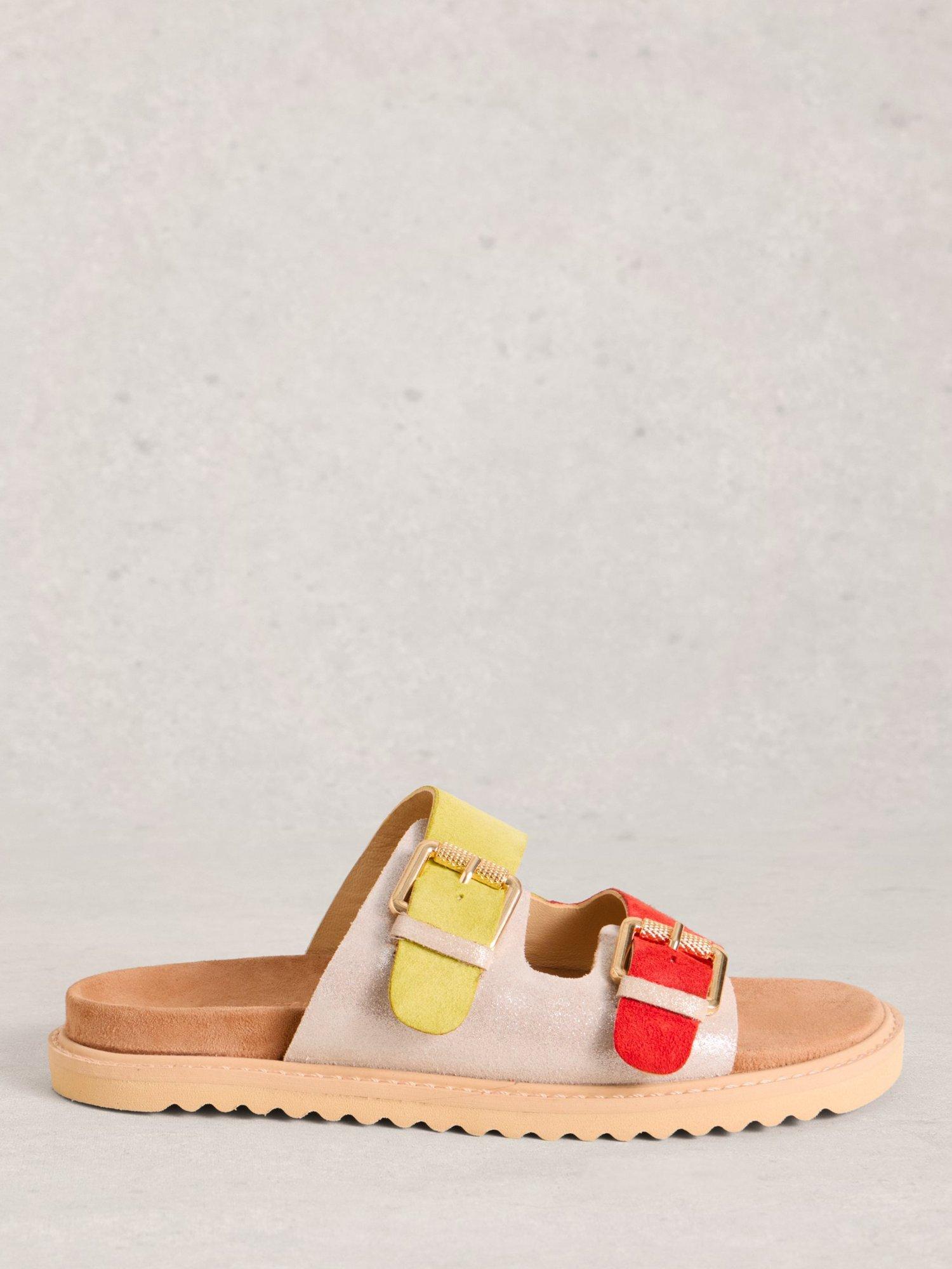 Nothing says 'summer' like a pair of sandals and this pair by White Stuff is crafted from a smooth suede. Set on a flat heel with a soft cushioned footbed, they are finished with adjustable two-tone buckle straps.