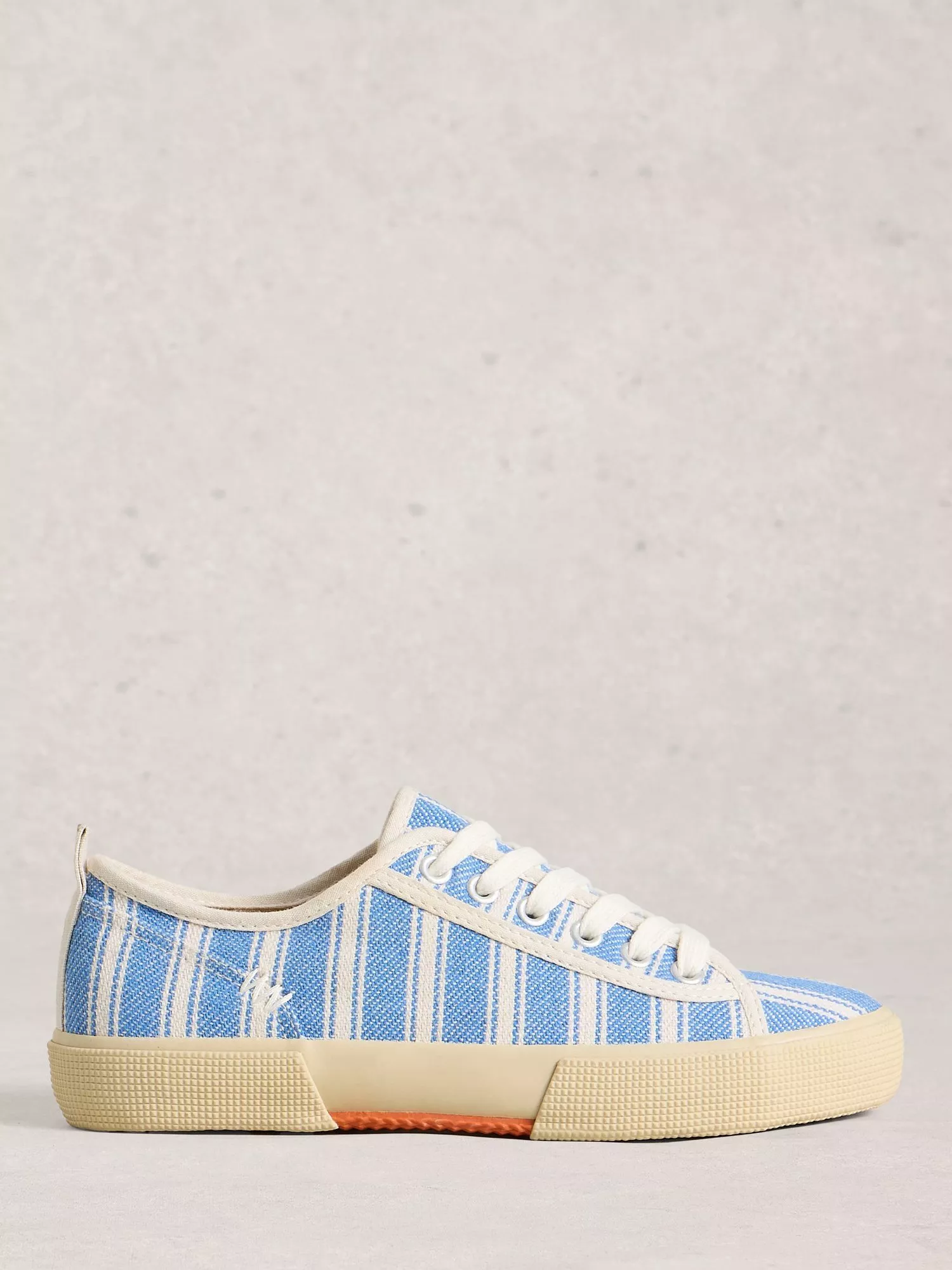 A classic everyday canvas trainer by White Stuff, made with textile uppers and hand stitch details.