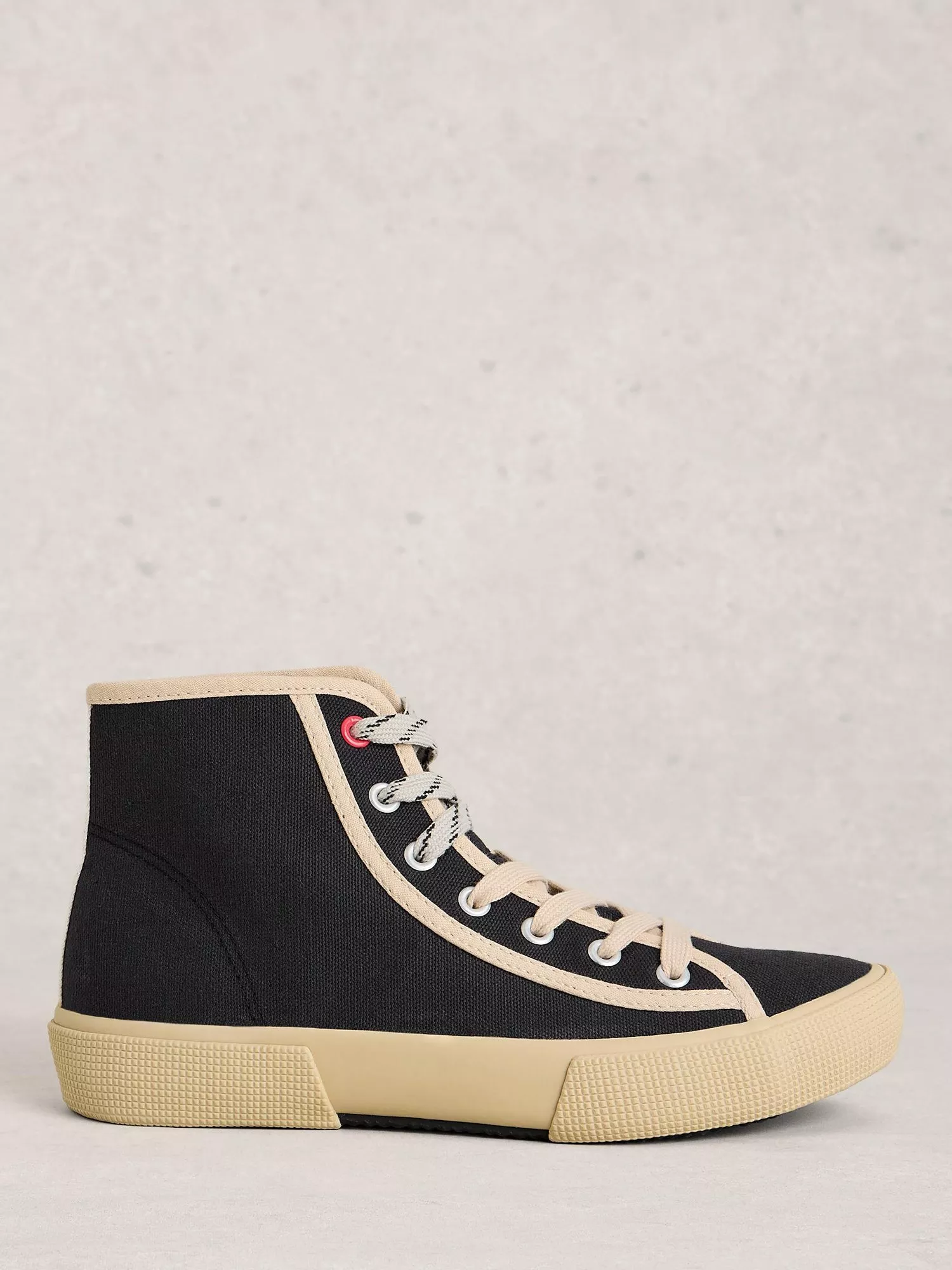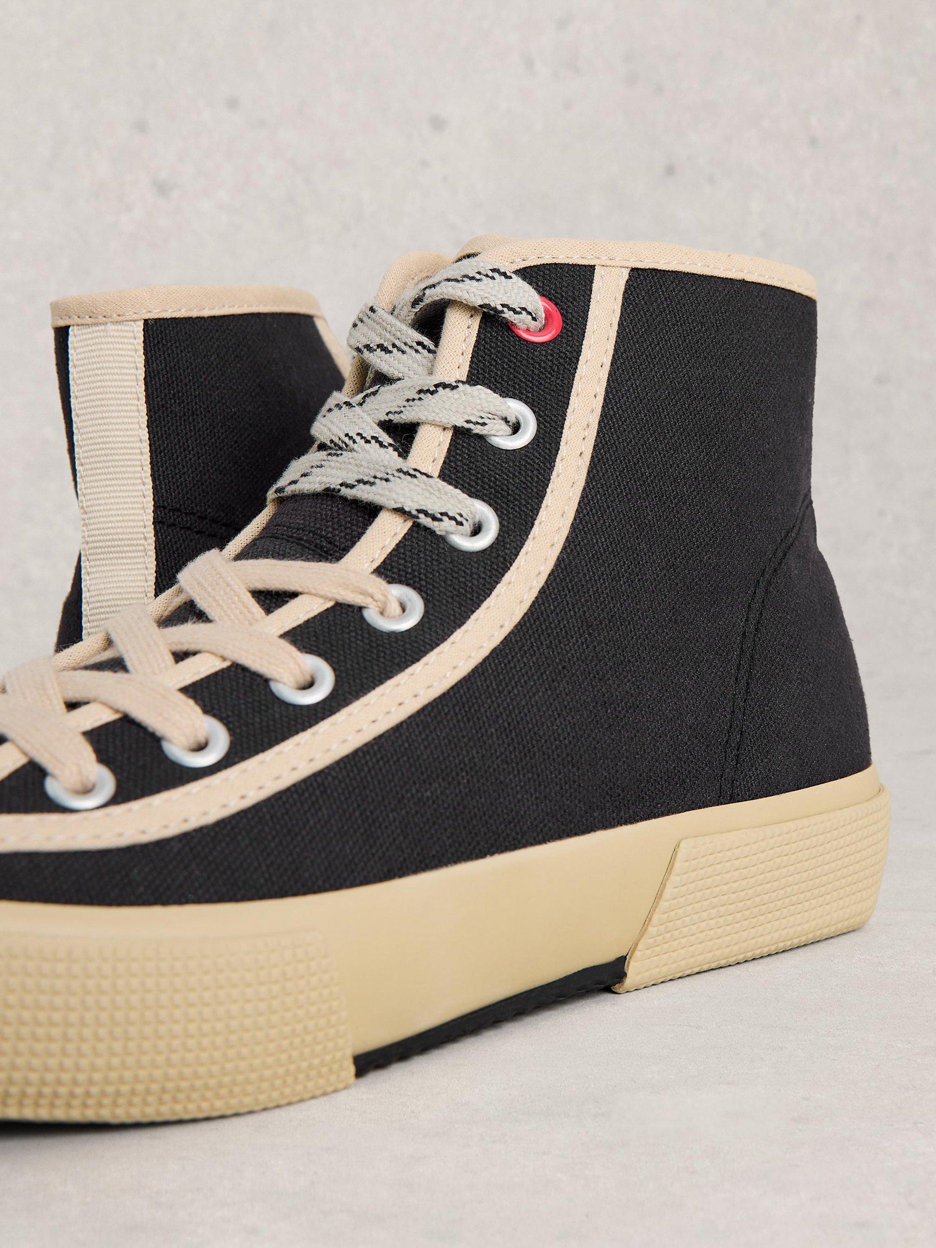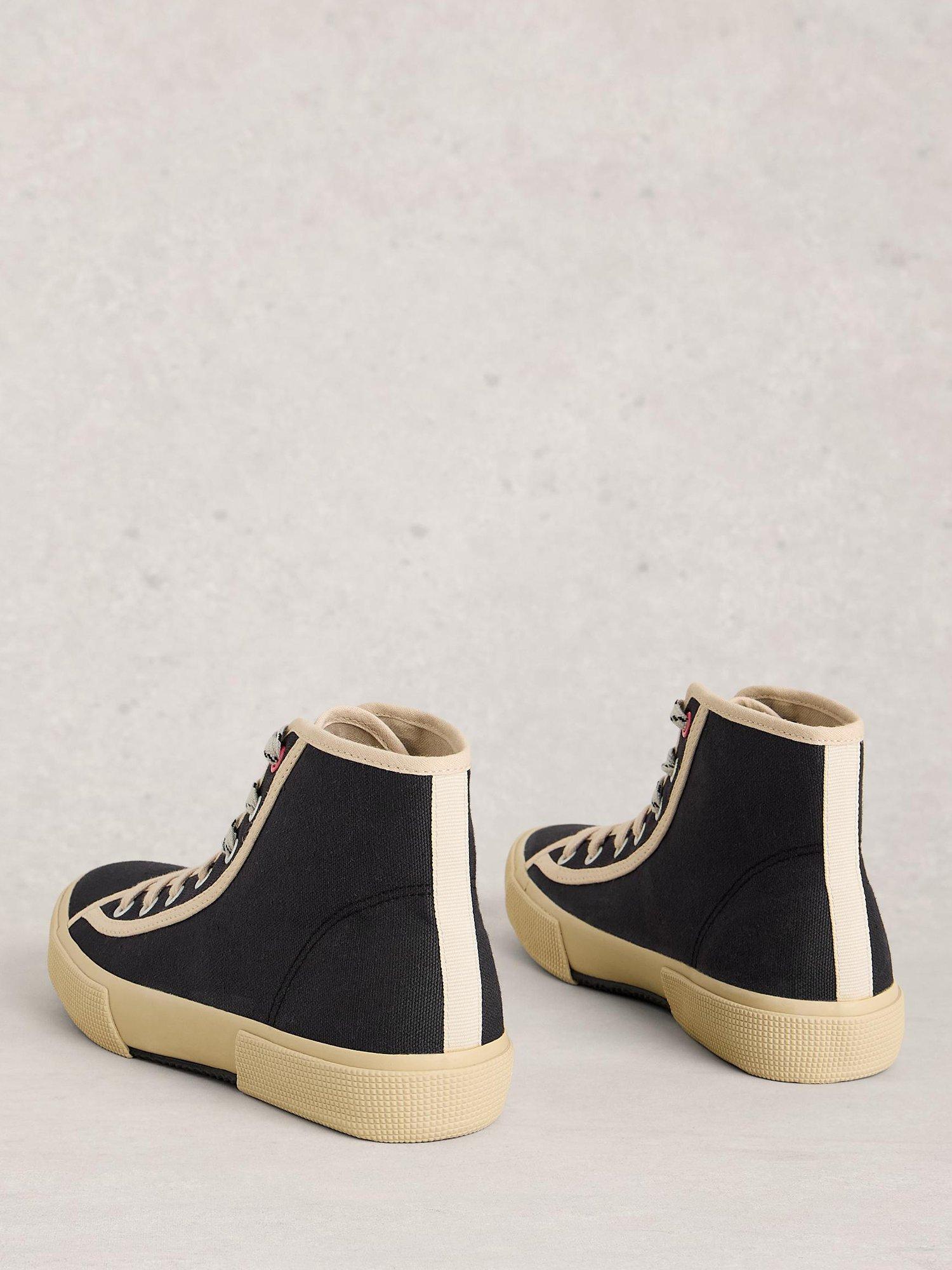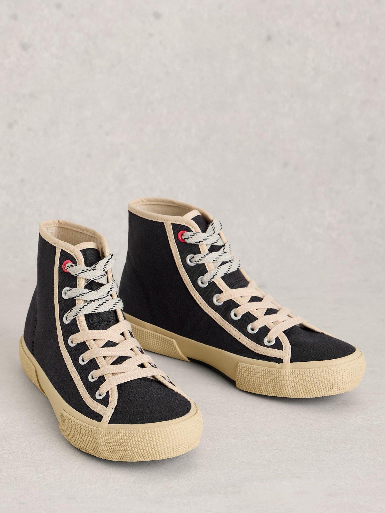 A pair of hi top canvas trainers by White Stuff, featuring a low flat heel and comfortable cotton lining. With a roomy round toe, find just the right fit with lace-up fastenings.