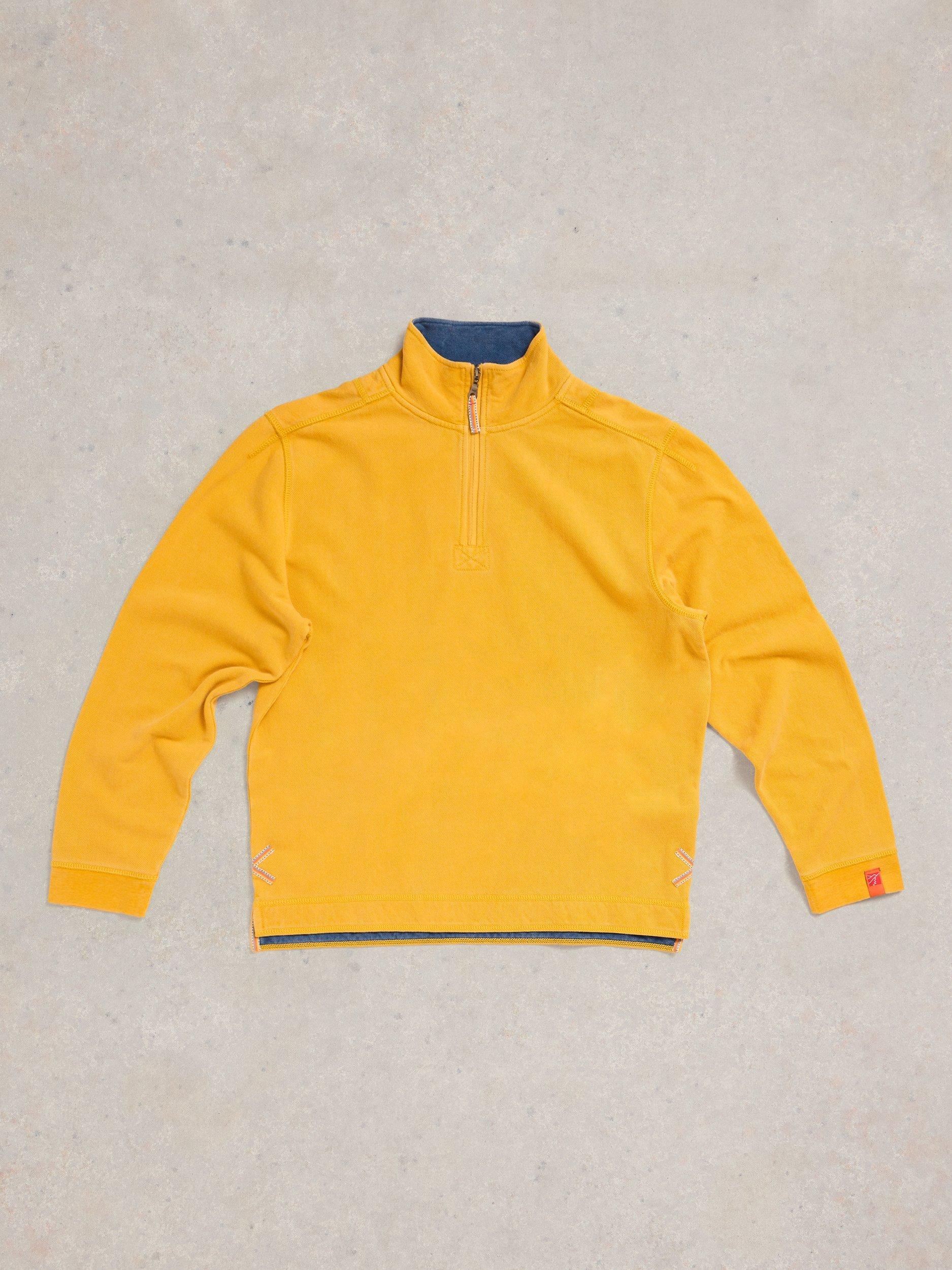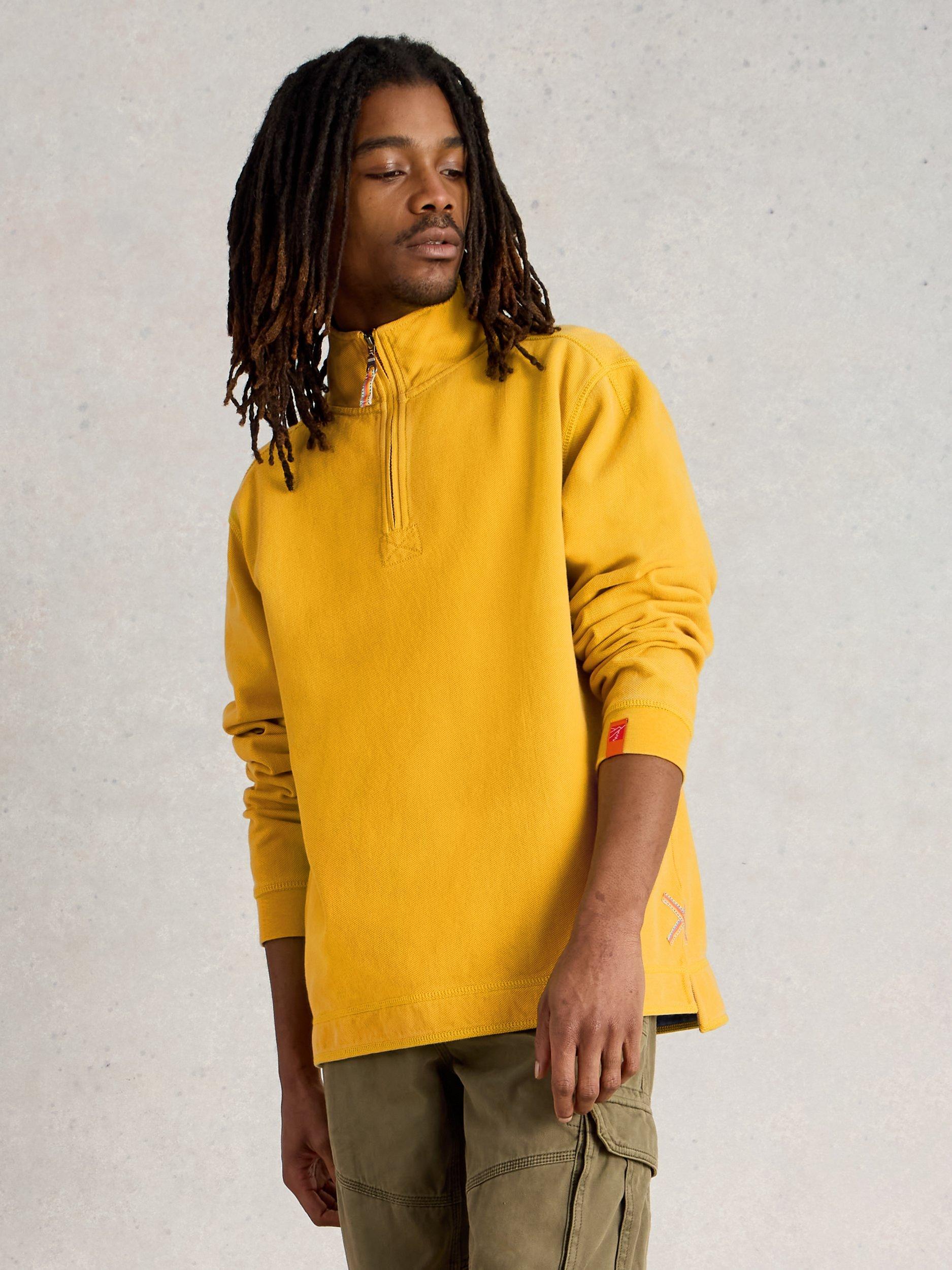 White StuffPique Cotton Half Zip Sweatshirt, Yellow