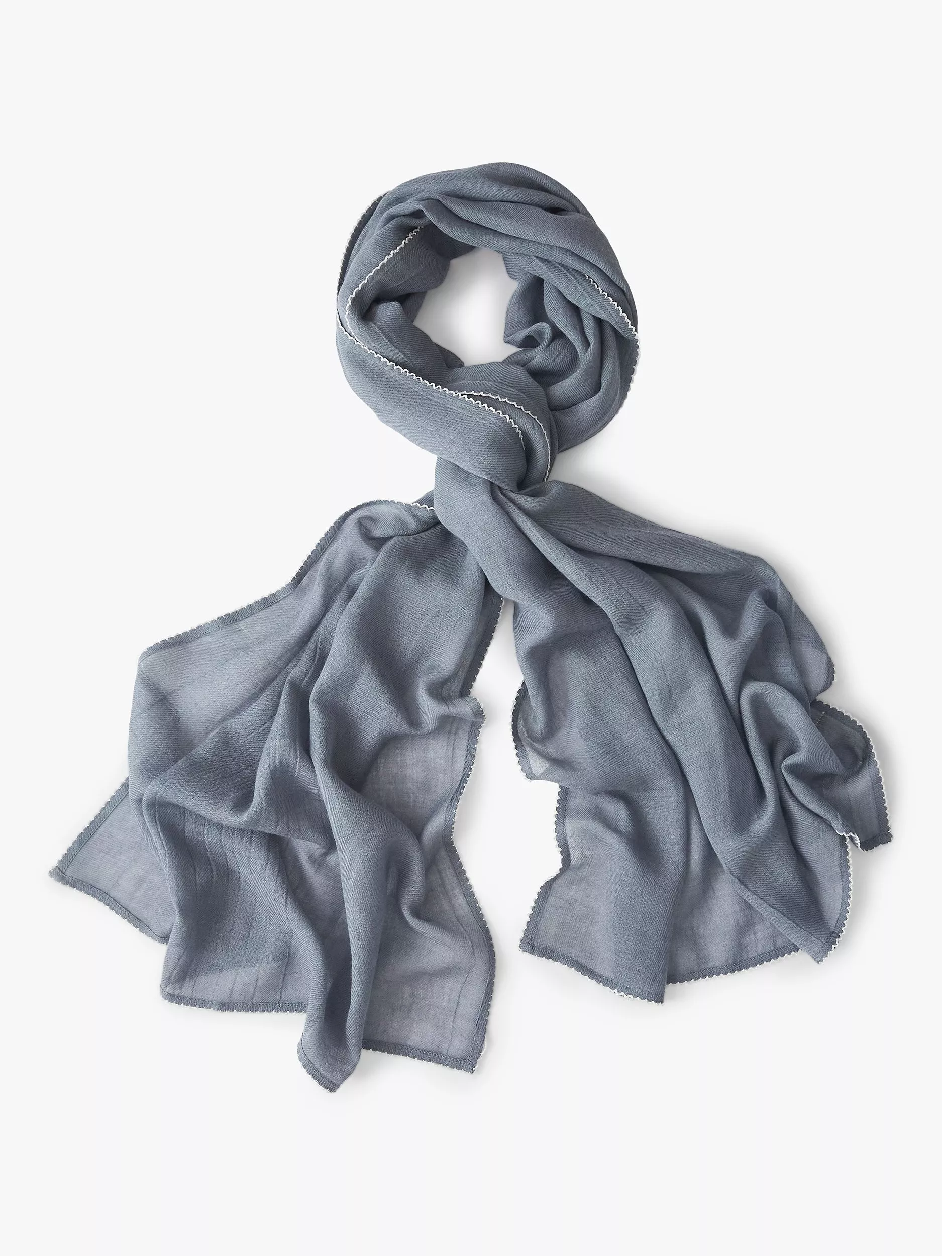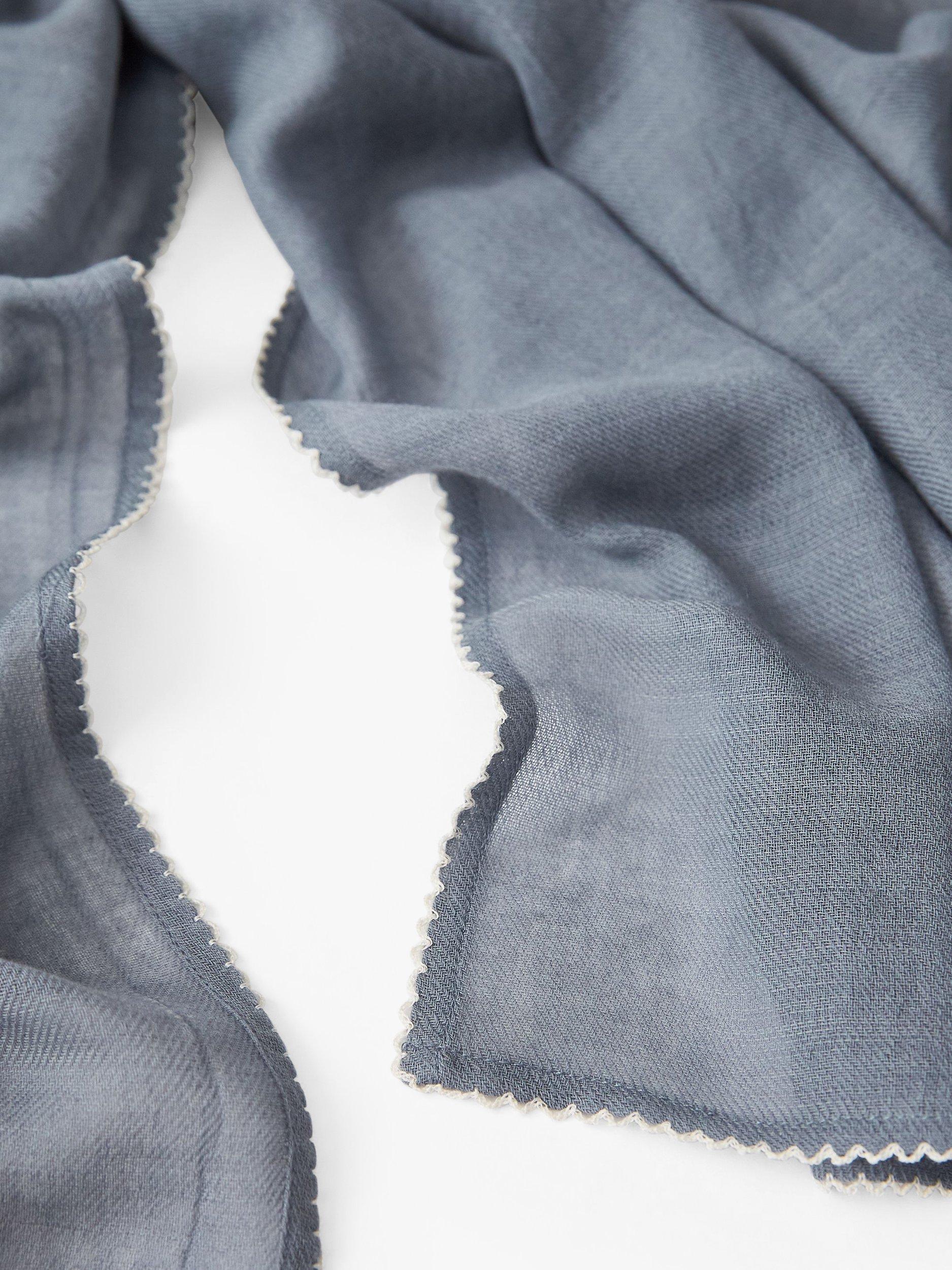 Woven from a blend of organic cotton and wool for the perfect balance between warmth and softness, this plain scarf is finished with a subtly sweet scallop trim.