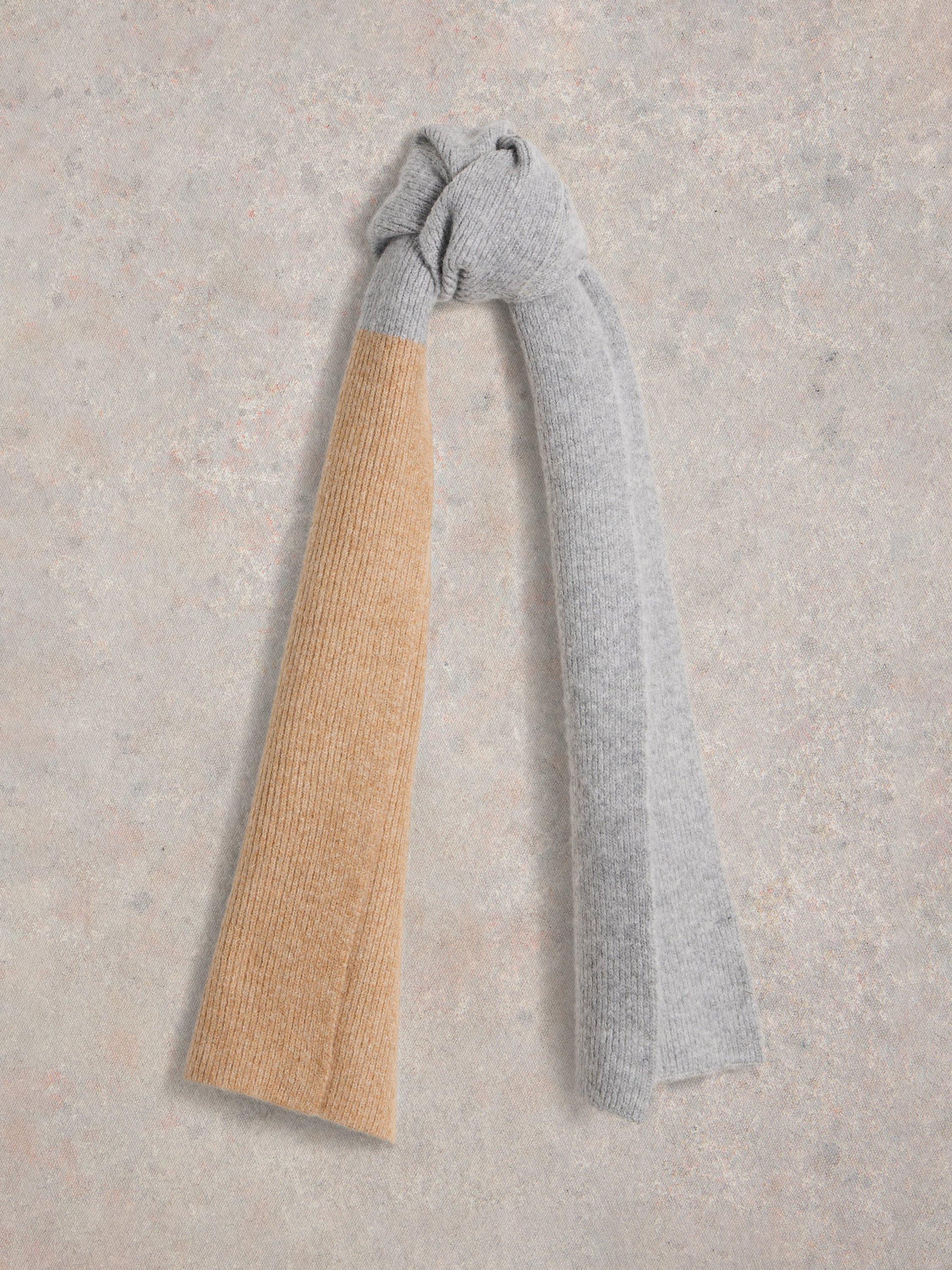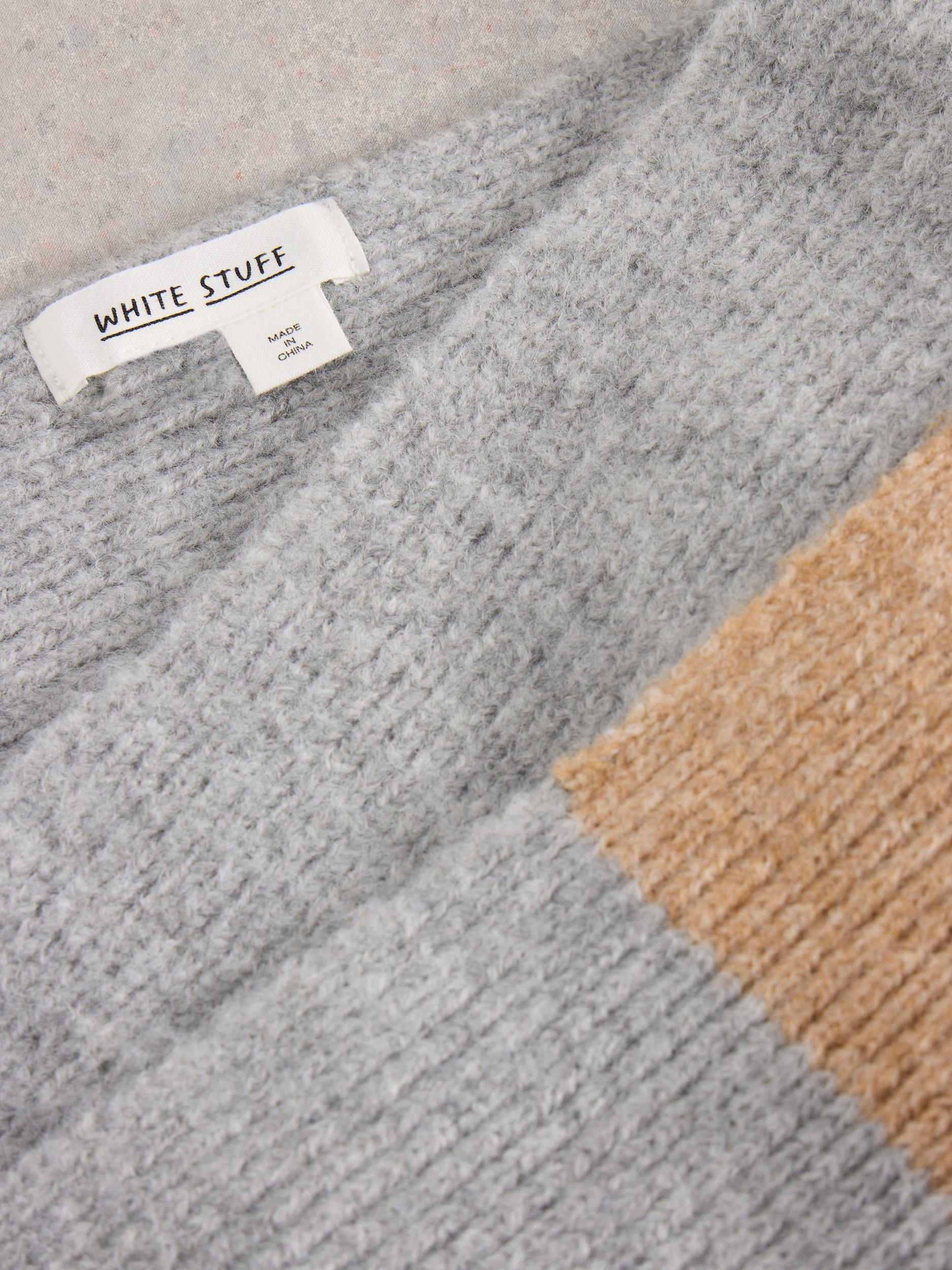 White StuffPoppy Colour Block Scarf, Grey/Peach