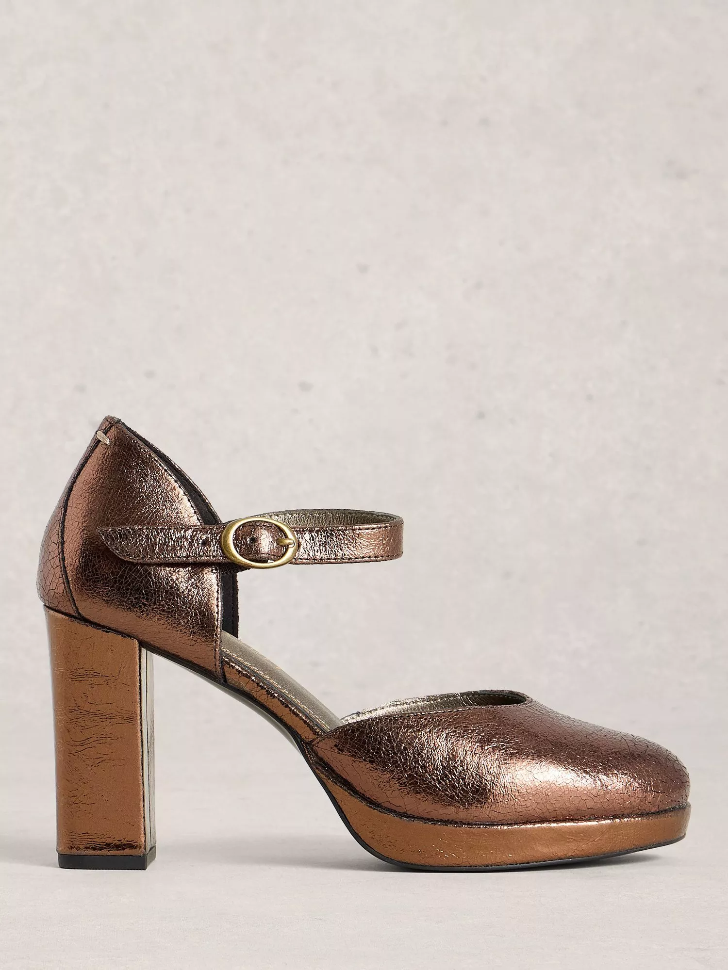 White Stuff’s court shoes in supple leather feature a sturdy platform and block heel for confidence. The buckle fastening keeps you secure while the round closed toe adds a touch of charm.