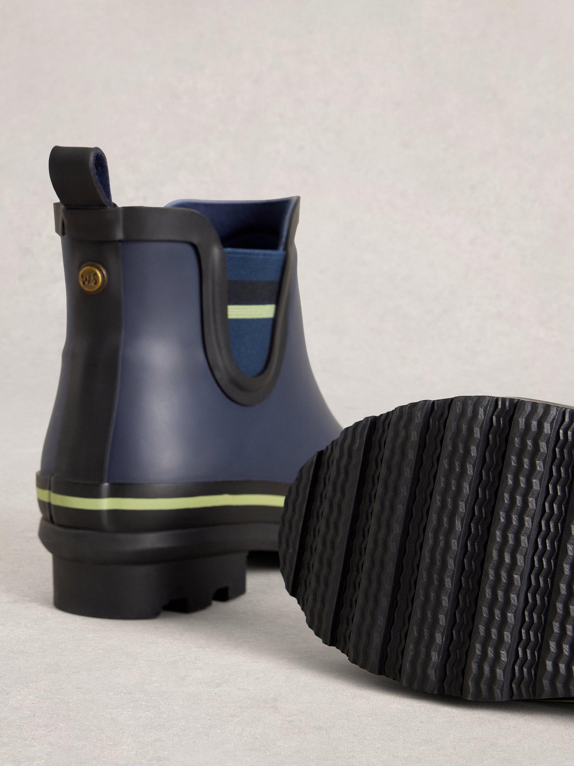 Getting out in the rain? Good on you. You know what else will look good on you? These ankle wellie boots. They’re cut short, so they work with whatever you’re wearing. Complete with cool colour pop details.