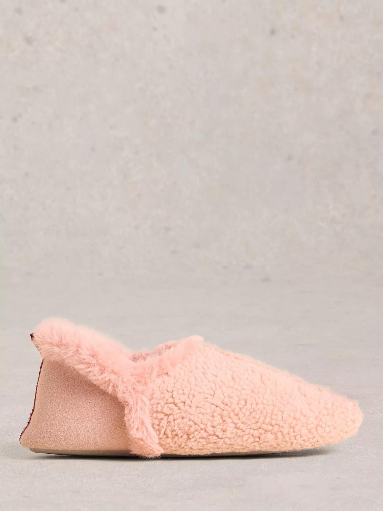 A white stuff favourite- a short closed-back cosy slipper with borg inside lining.