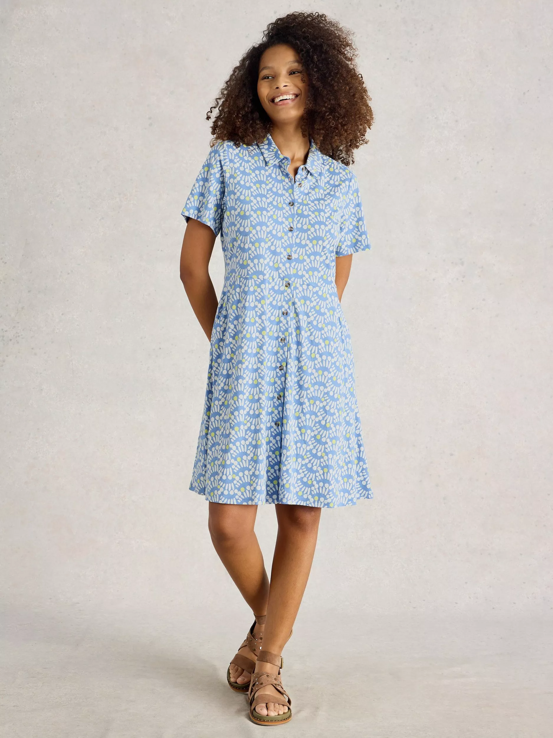 A classic style you can rely on again and again, this knee length shirt dress from White Stuff is rendered in an organic cotton blend. Smartened with a collar neckline and short sleeves, it draws the eye with an abstract print.