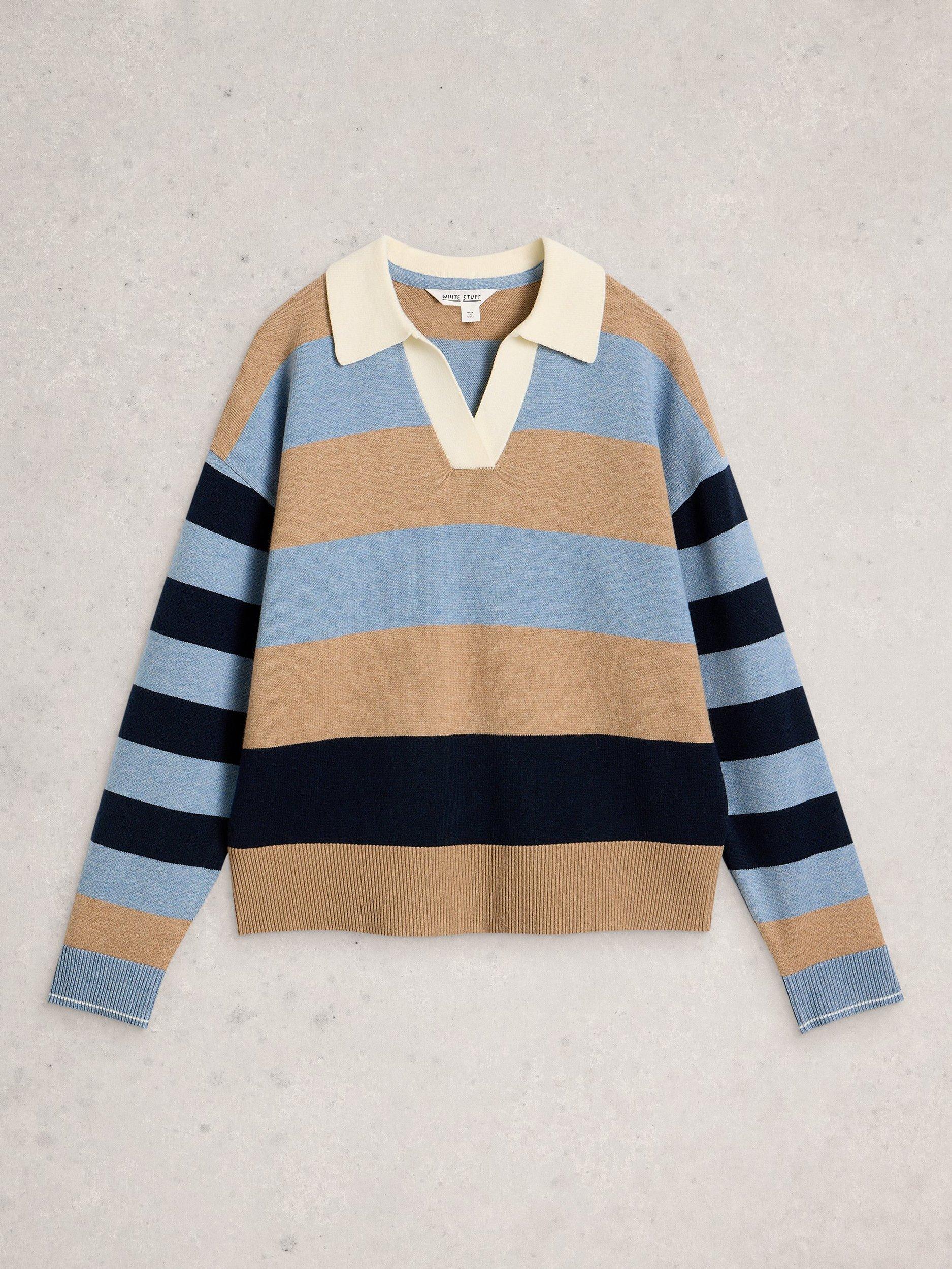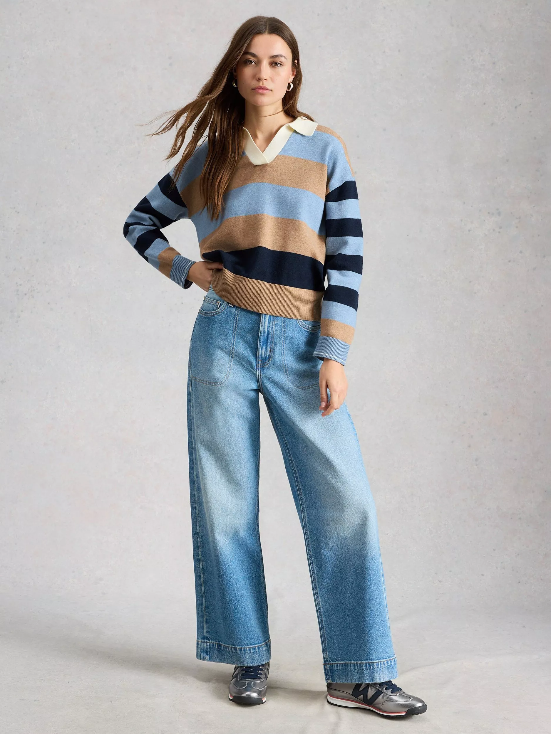 White StuffRochelle Stripe Rugby Jumper, Light Blue/Multi