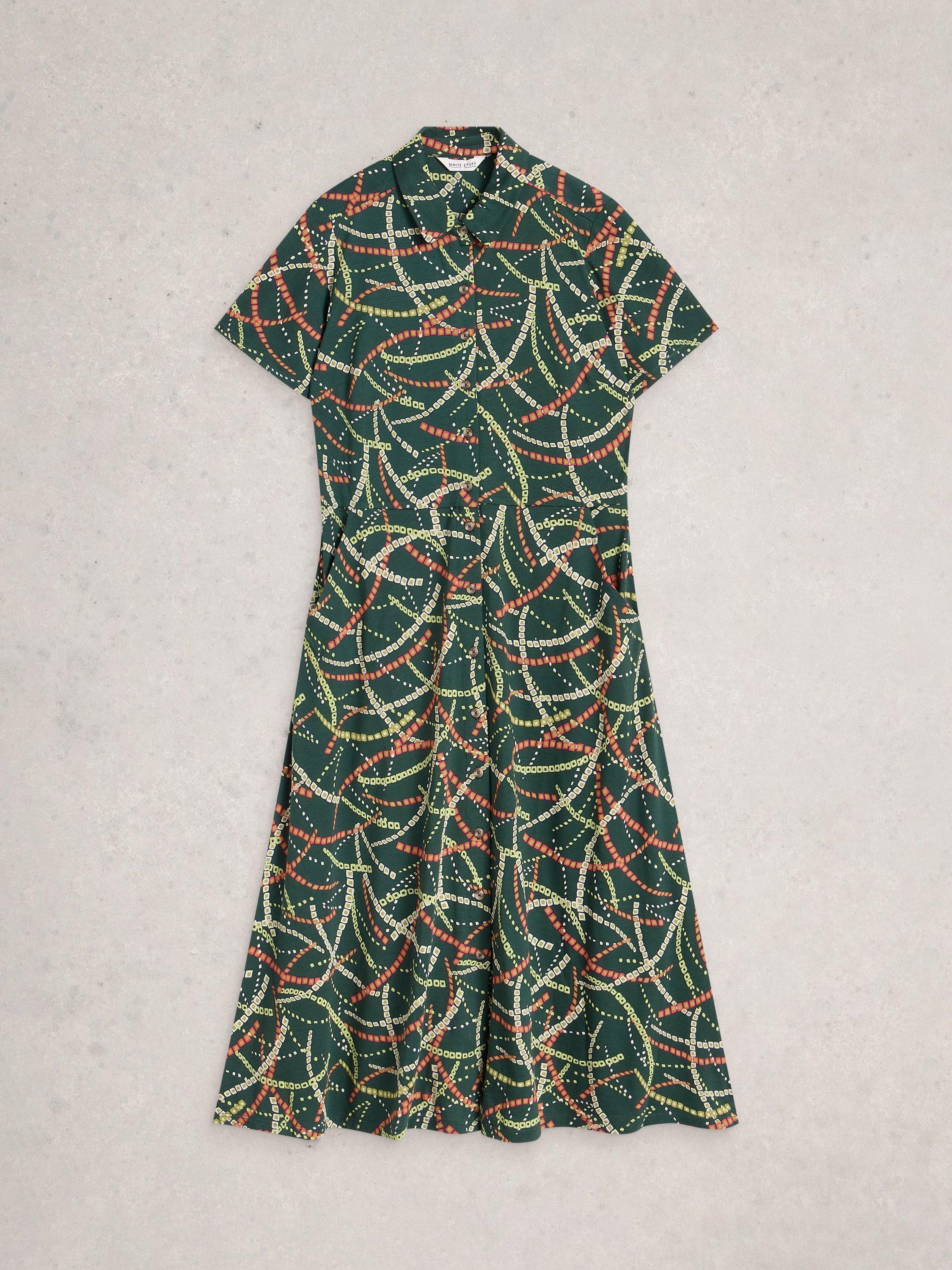White StuffRua Abstract Shirt Dress, Green/Multi