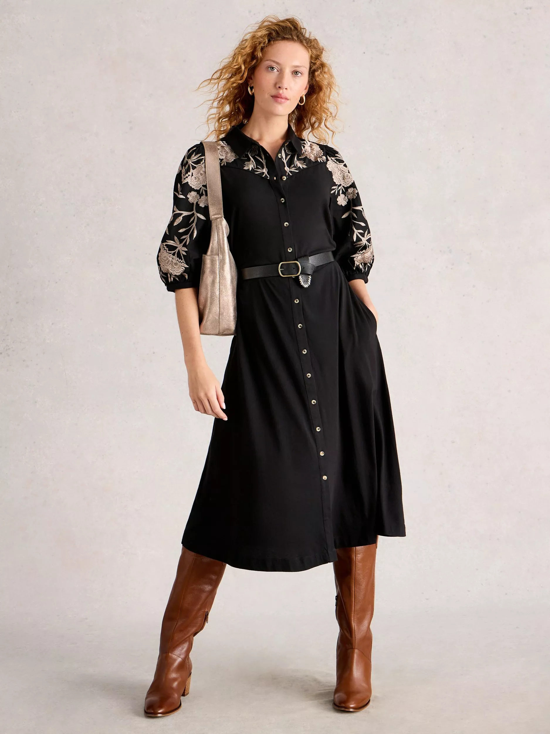 White Stuff’s midi shirt dress blends soft, conscious fabrics with playful floral embroidery – perfect for brightening up your day. Clever details and a comfortable fit make it your go–to pick for effortless style and all–day ease.