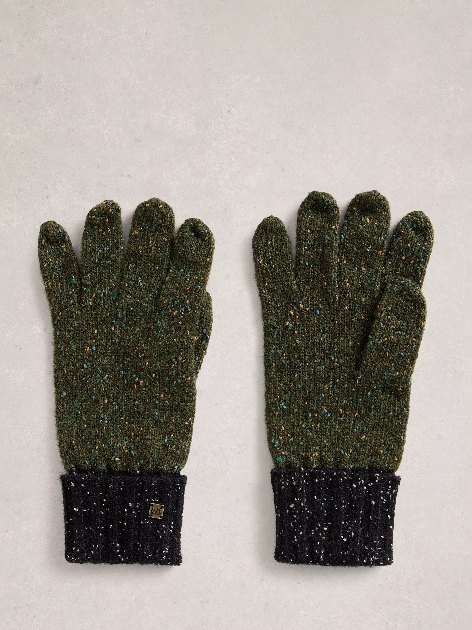 White StuffSammy Lambswool Blend Gloves, Green/Multi
