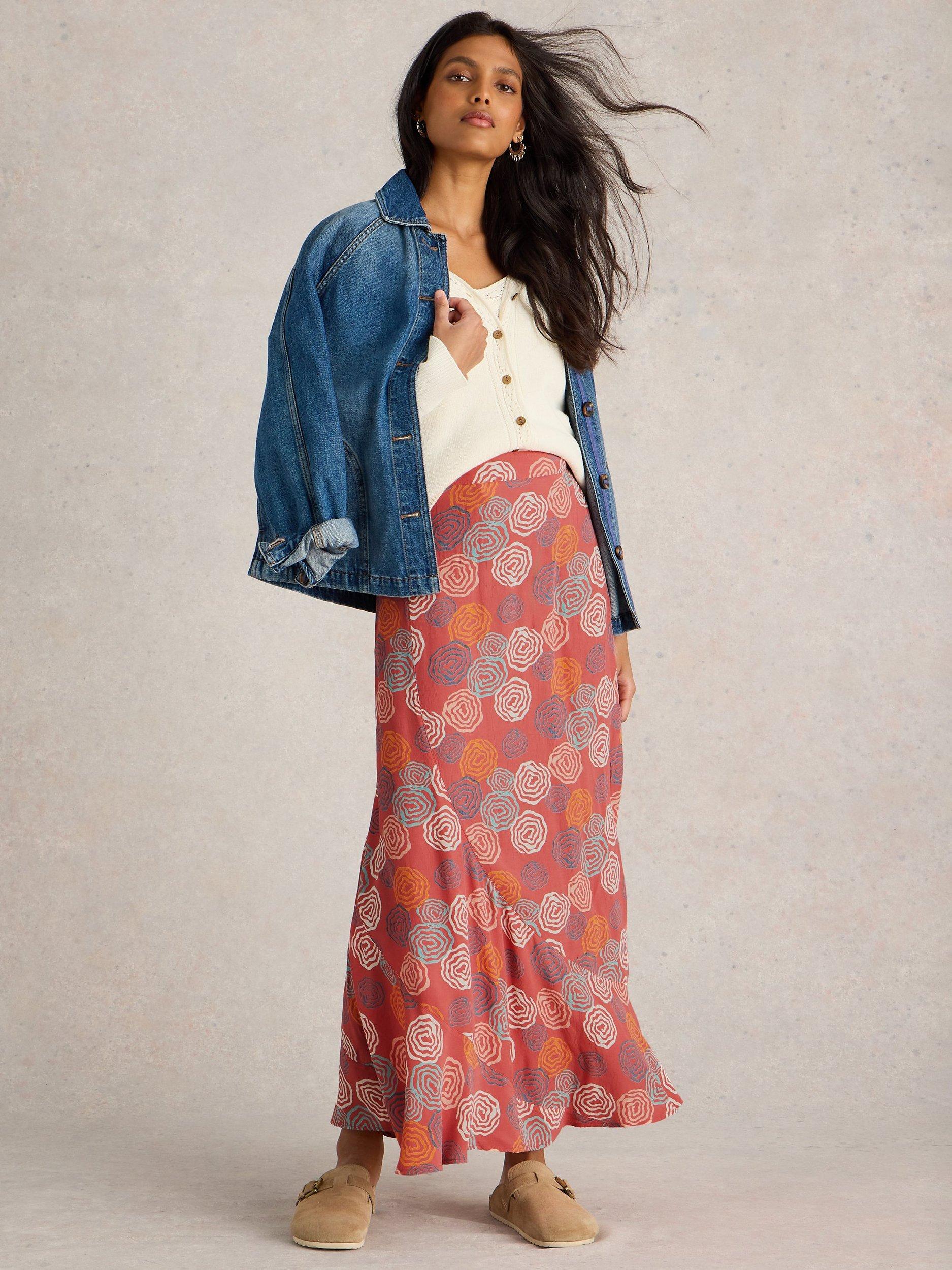 Shaped to an A-line profile, this maxi skirt from White Stuff is splattered with an abstract print.