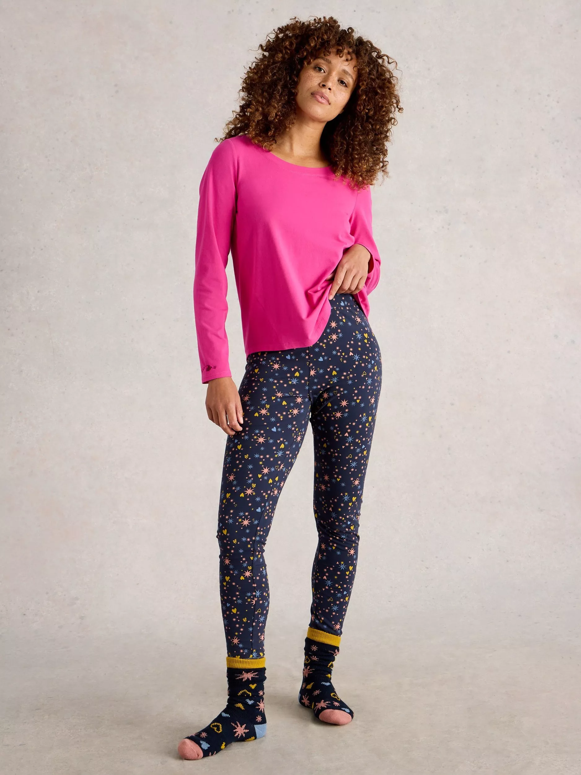 White StuffSelena Hearts Pyjama Leggings, Navy/Multi