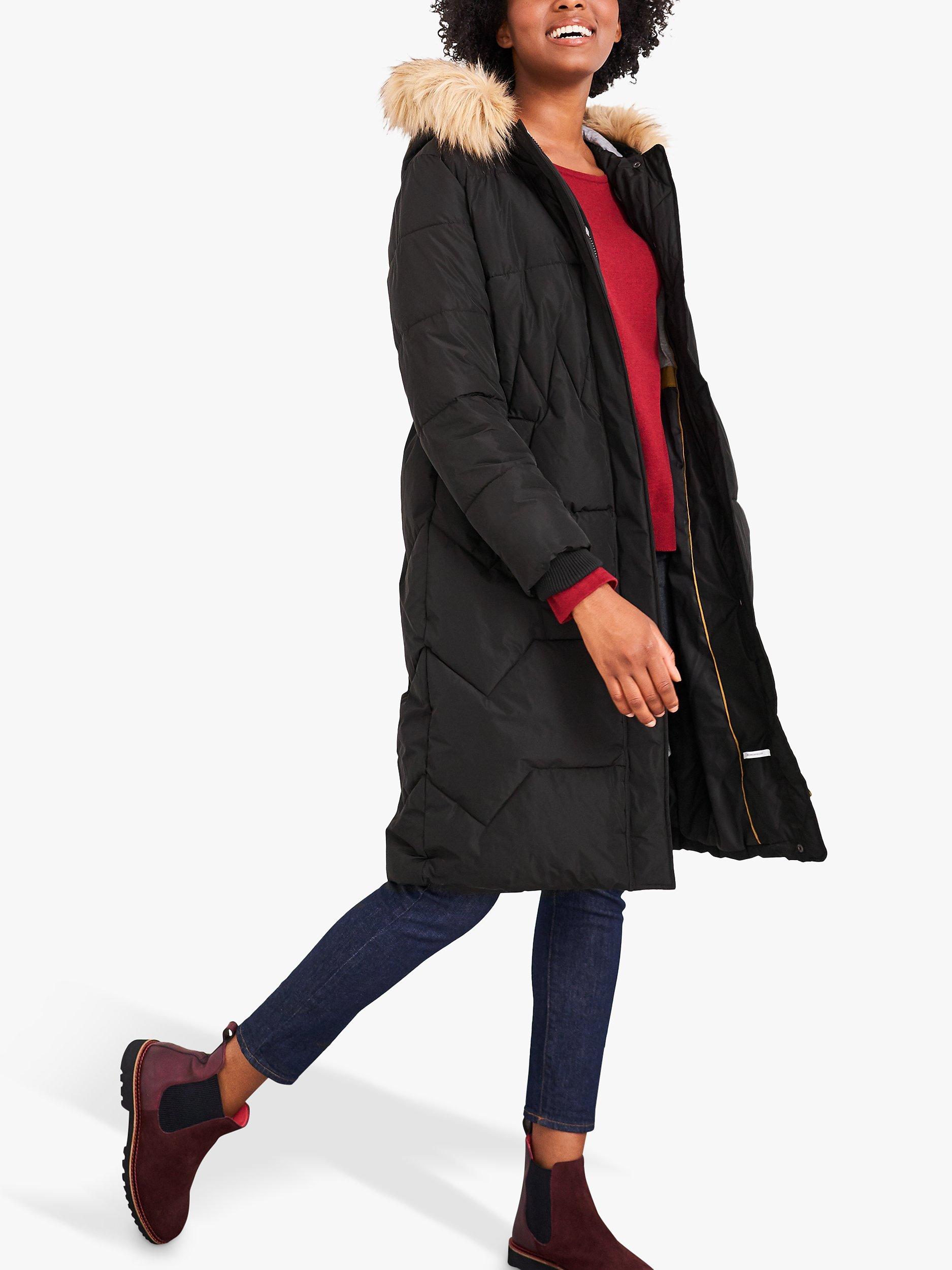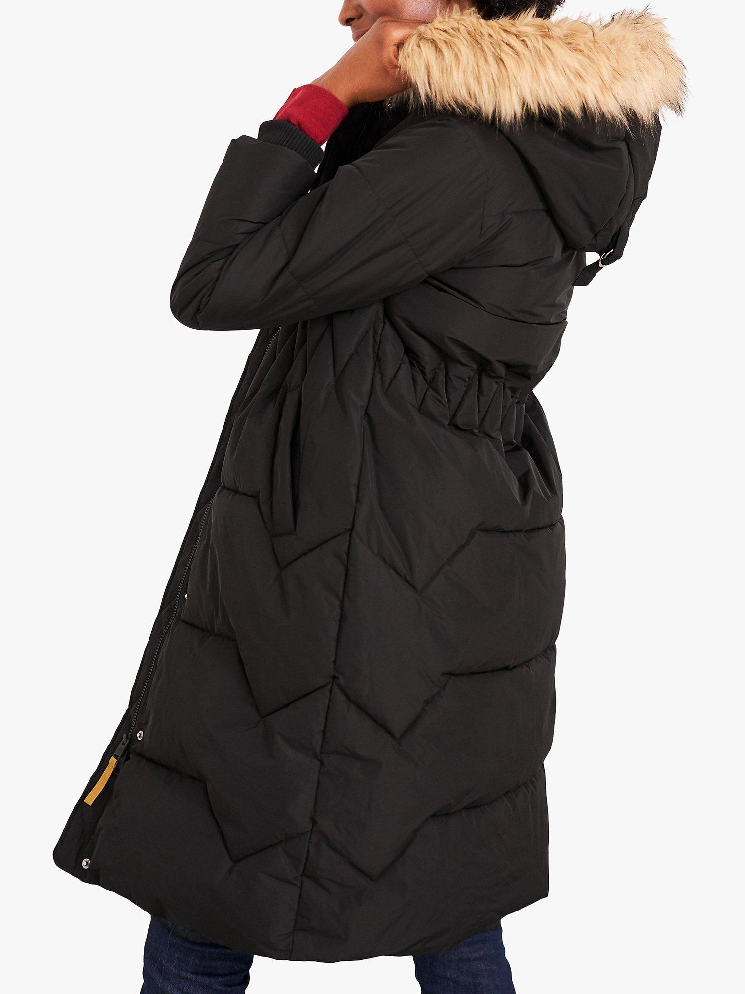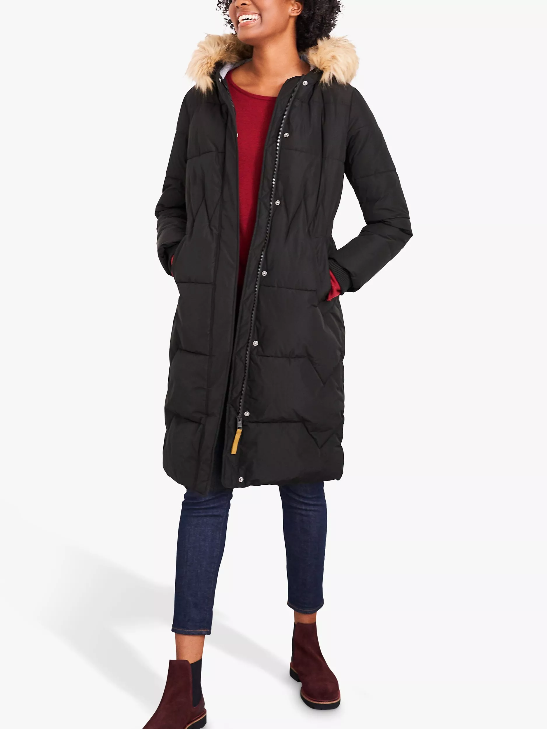 A practical option in changeable weather with its built-in hood and detachable faux fur trim, it is fashioned from longlasting fabric that will see away the cold season after season.