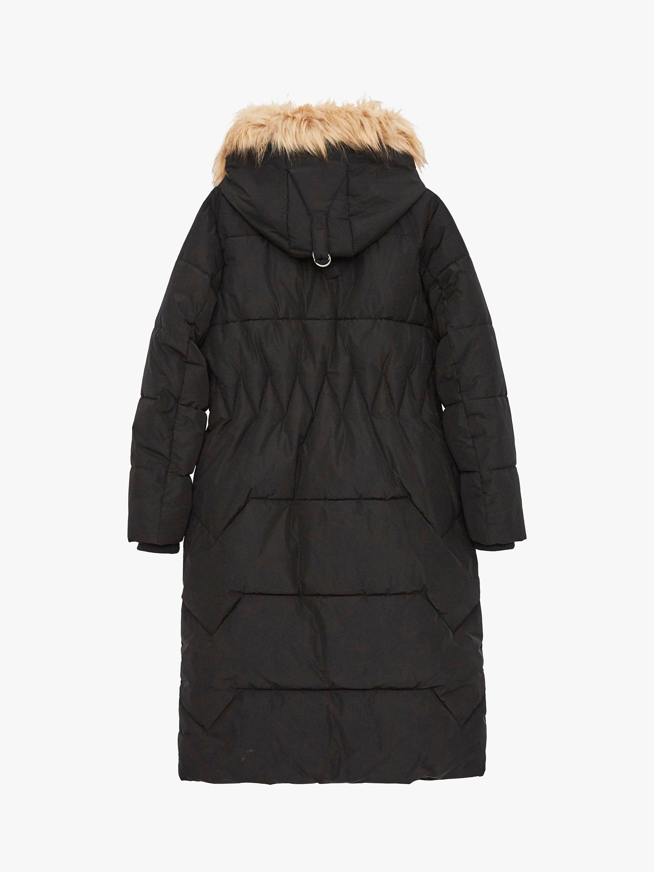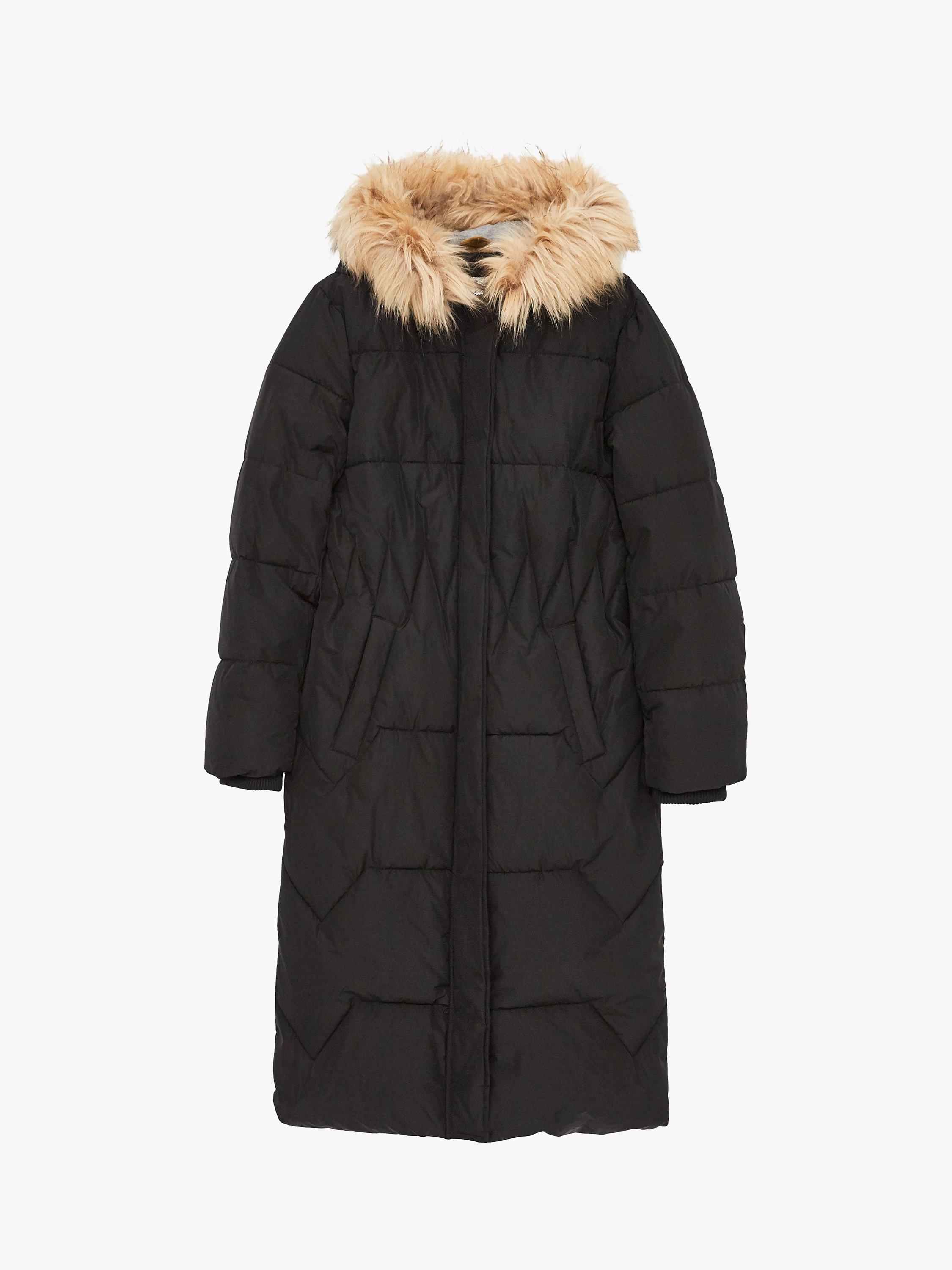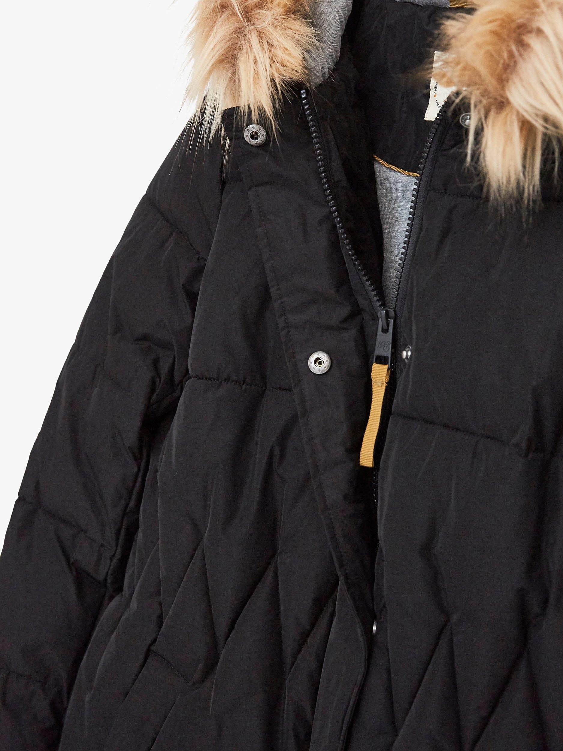 A practical option in changeable weather with its built-in hood and detachable faux fur trim, it is fashioned from longlasting fabric that will see away the cold season after season.