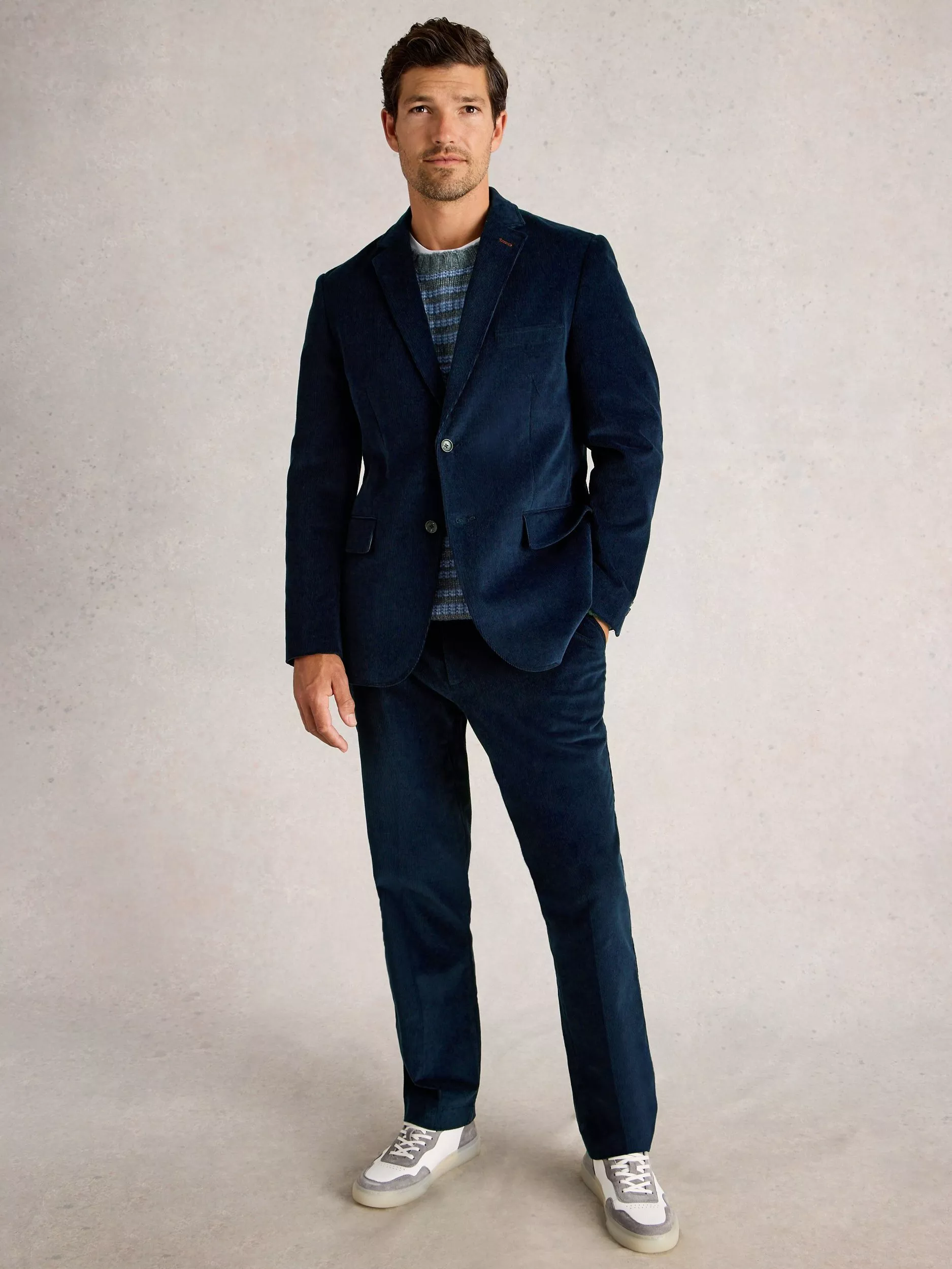 This corduroy blazer keeps you looking sharp and feeling comfortable, whatever your day demands. With a regular cut and added stretch, it's designed with handy pockets that offer space for essentials.