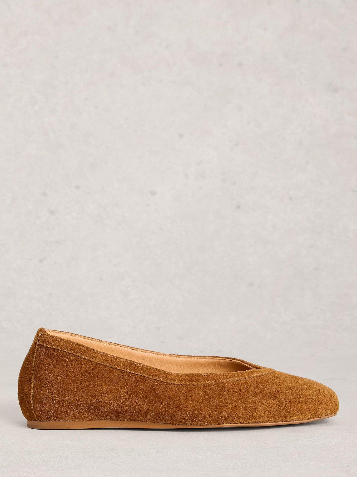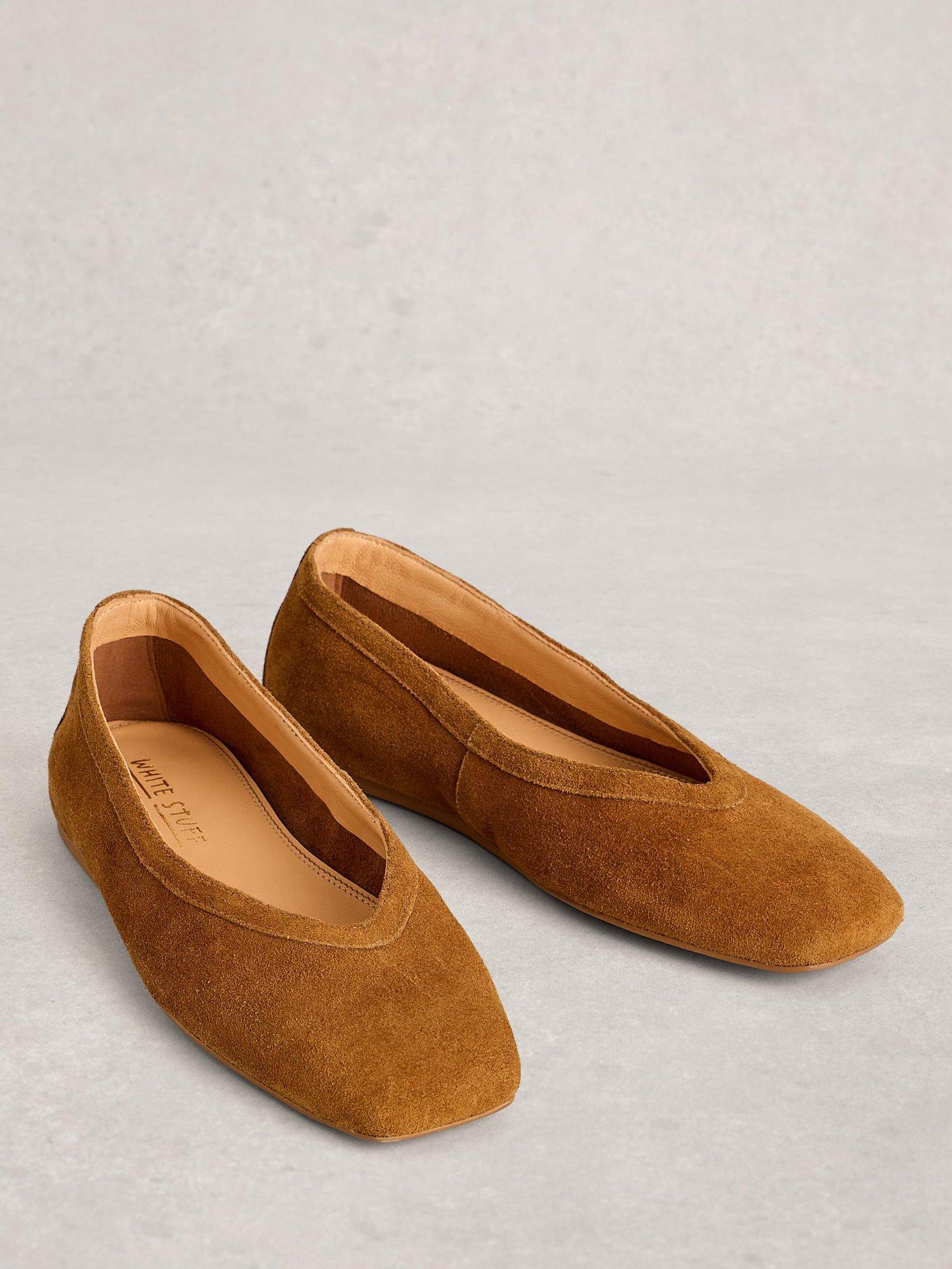 Suede ballerina pumps, designed for easy slip-on comfort and all-day wear. The low flat heel and square toe offer a reliable fit, making your casual days simple yet stylish.