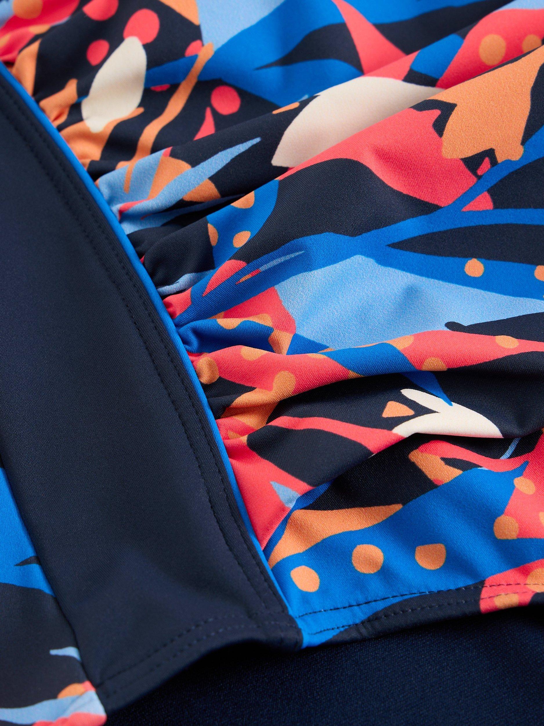 A swimsuit with adjustable straps and elasticated sides.