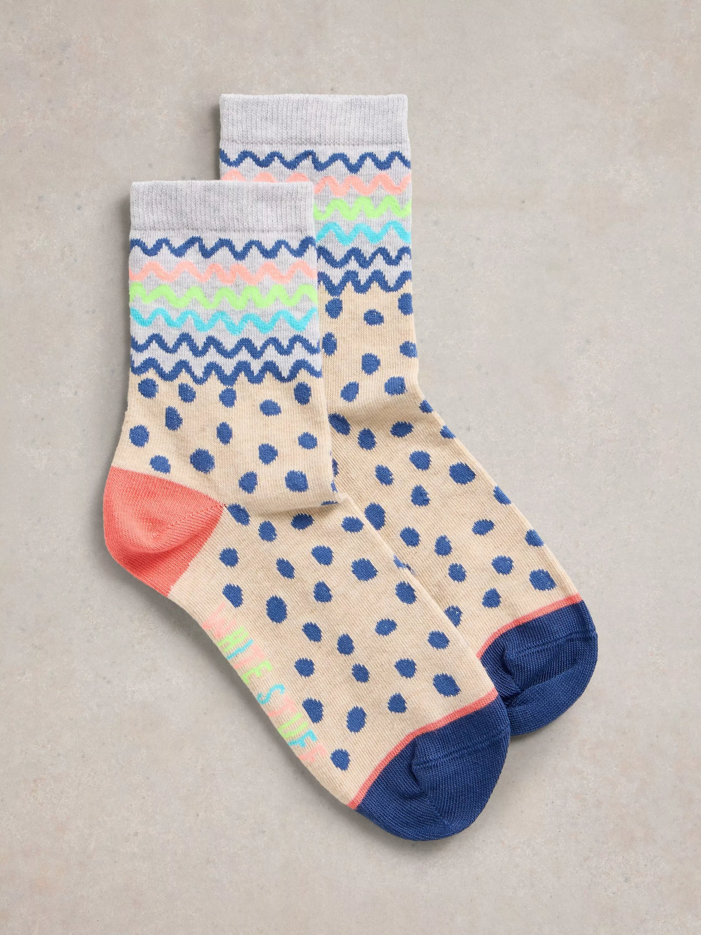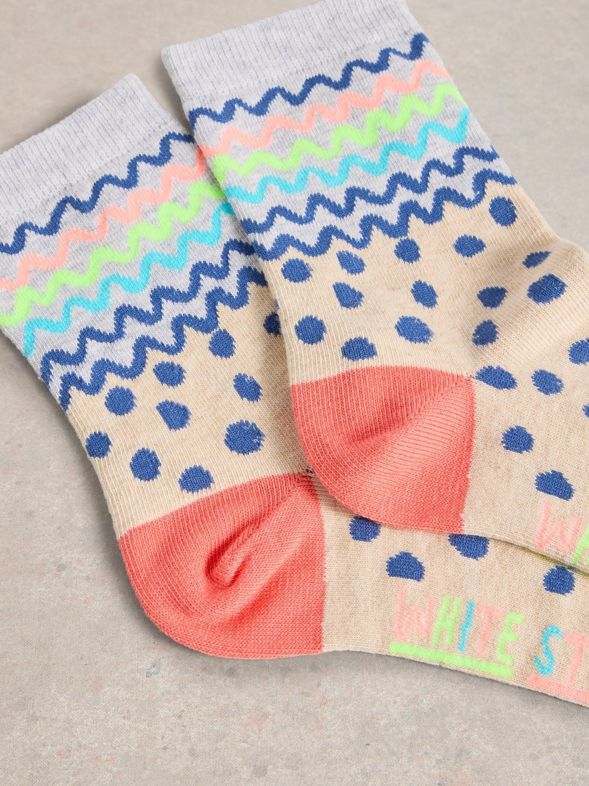 White StuffSquiggle Organic Cotton Rich Socks, Natural/Multi