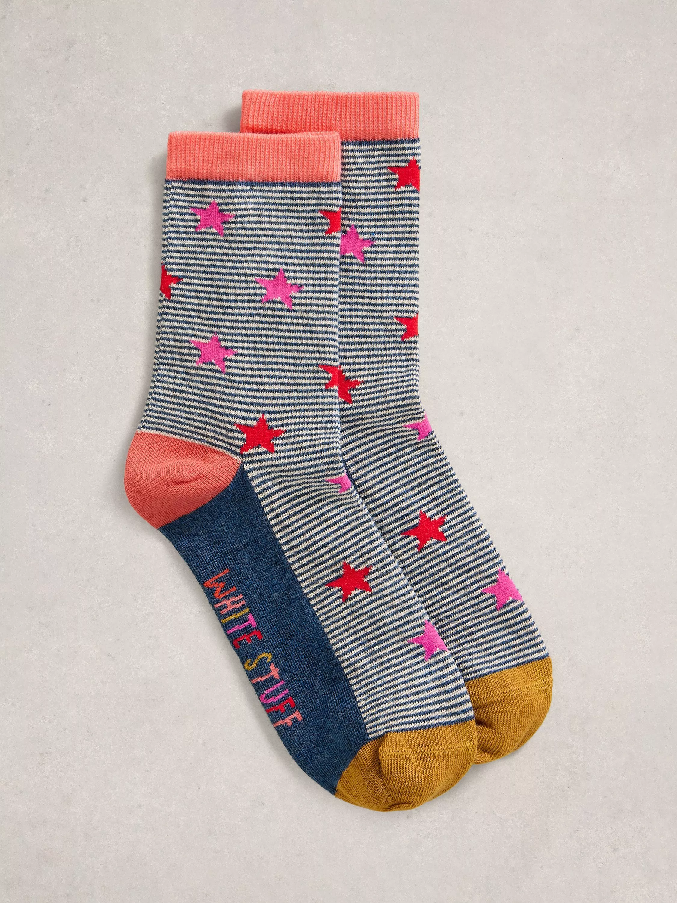 Designed for comfort and everyday wear, this pair of socks have a star and stripe pattern that adds character, while the organic cotton blend keeps feet feeling fresh all day.