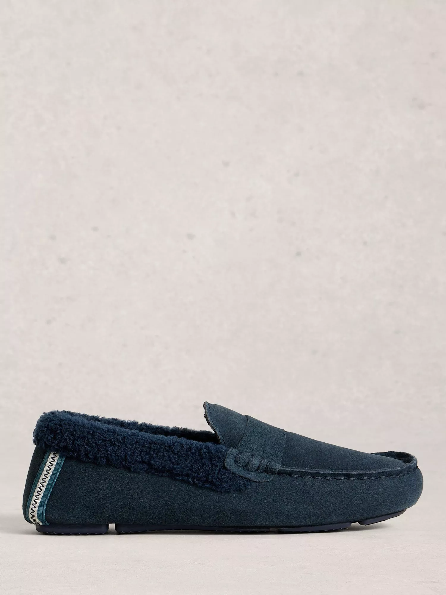Designed with comfort in mind, this moccasin slipper is made from sumptuous suede with soft shearling trims. Contrast stitching at the rear also adds a characterful finishing touch.