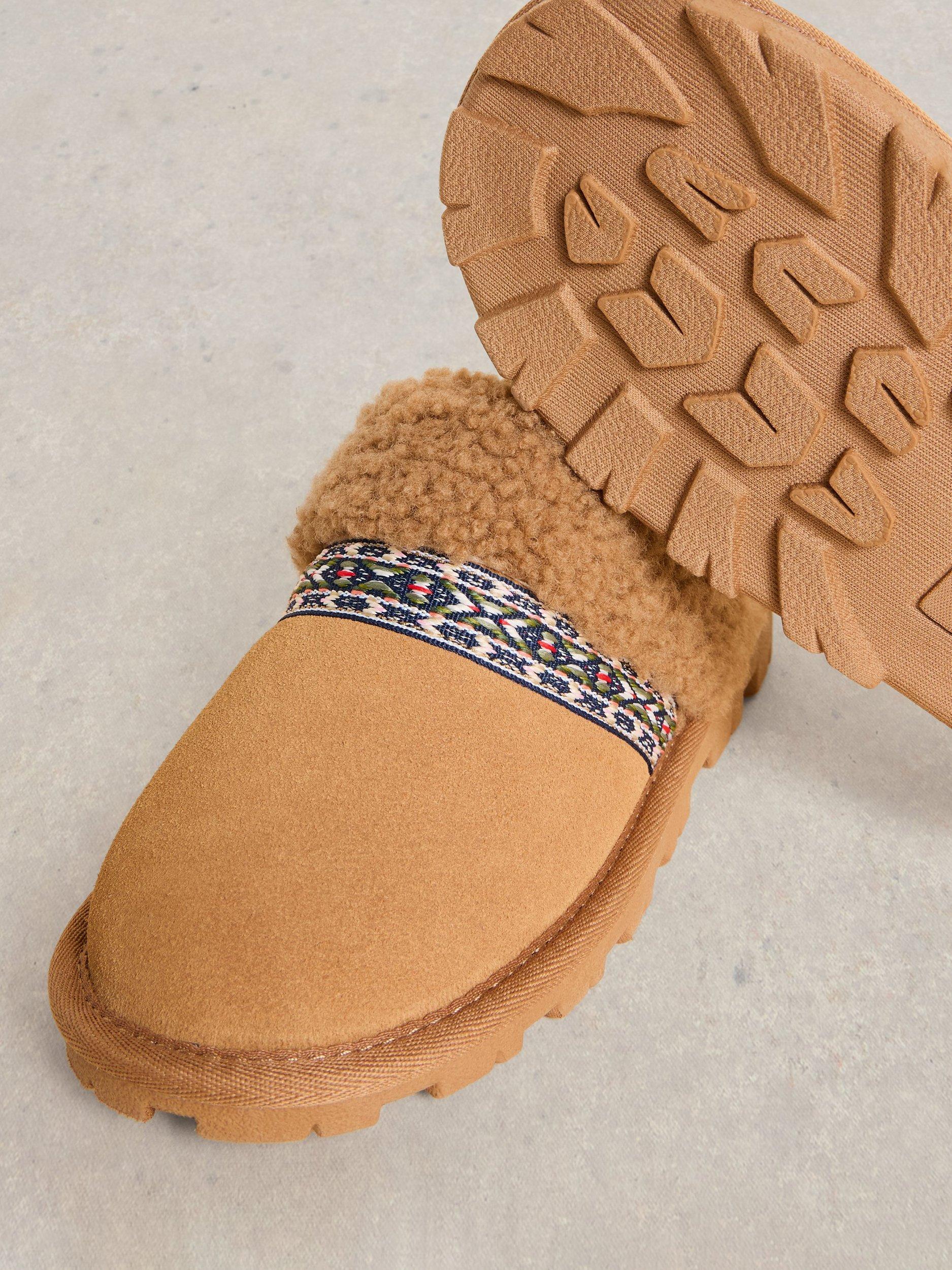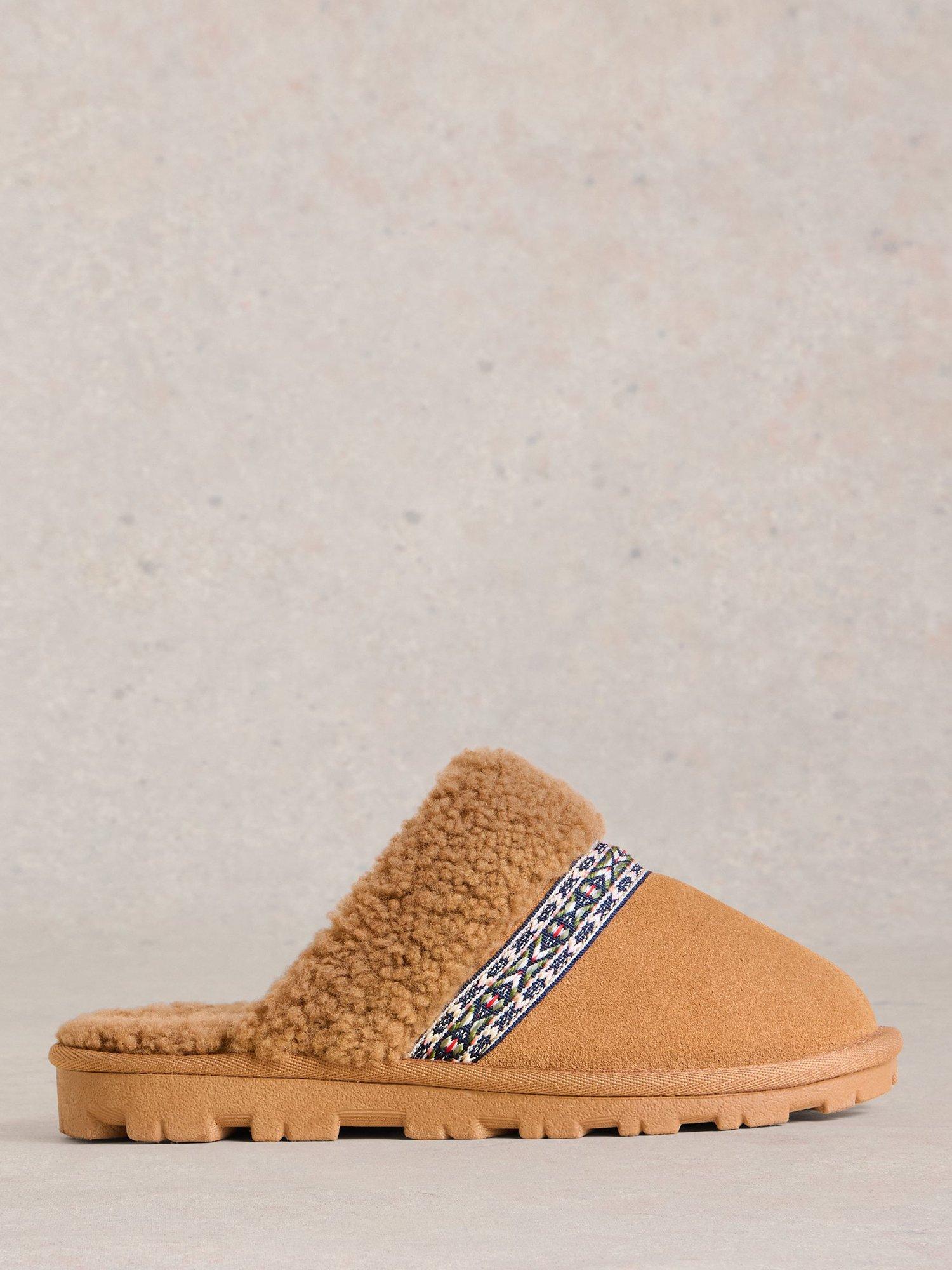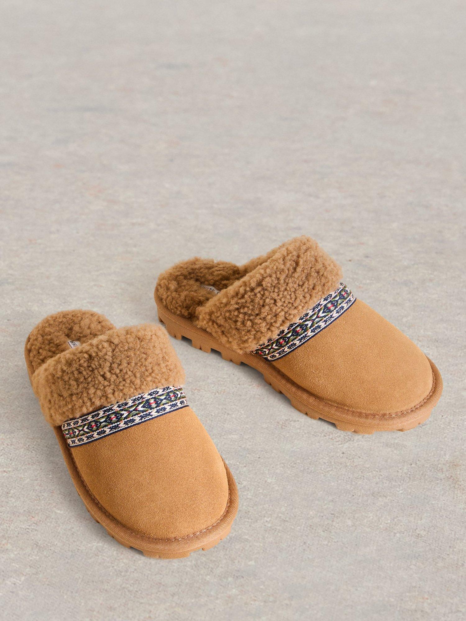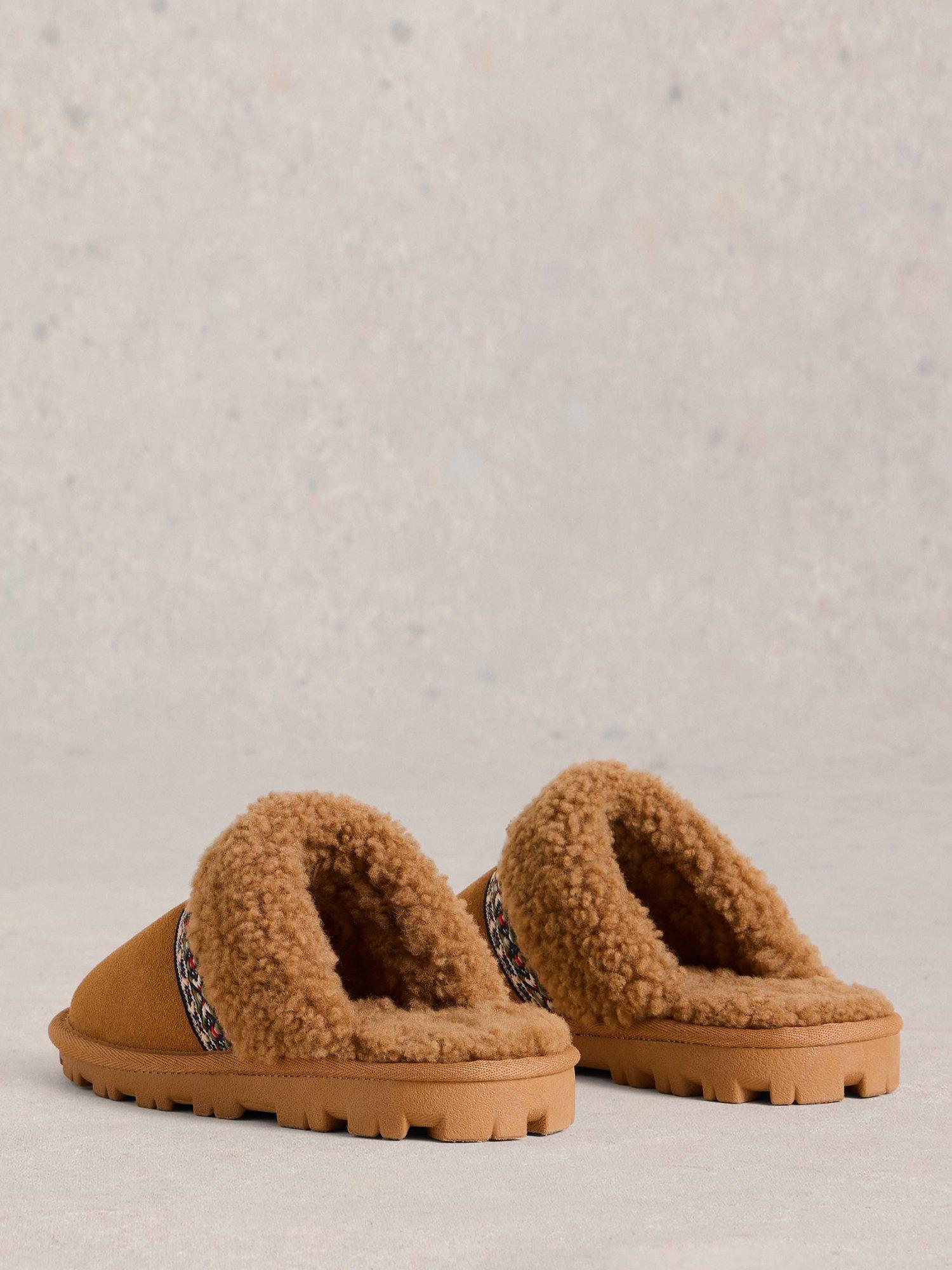 Slipping on with ease as you move to loungewear mode, these suede slippers from White Stuff are designed with a plush shearling lining and memory foam insoles.