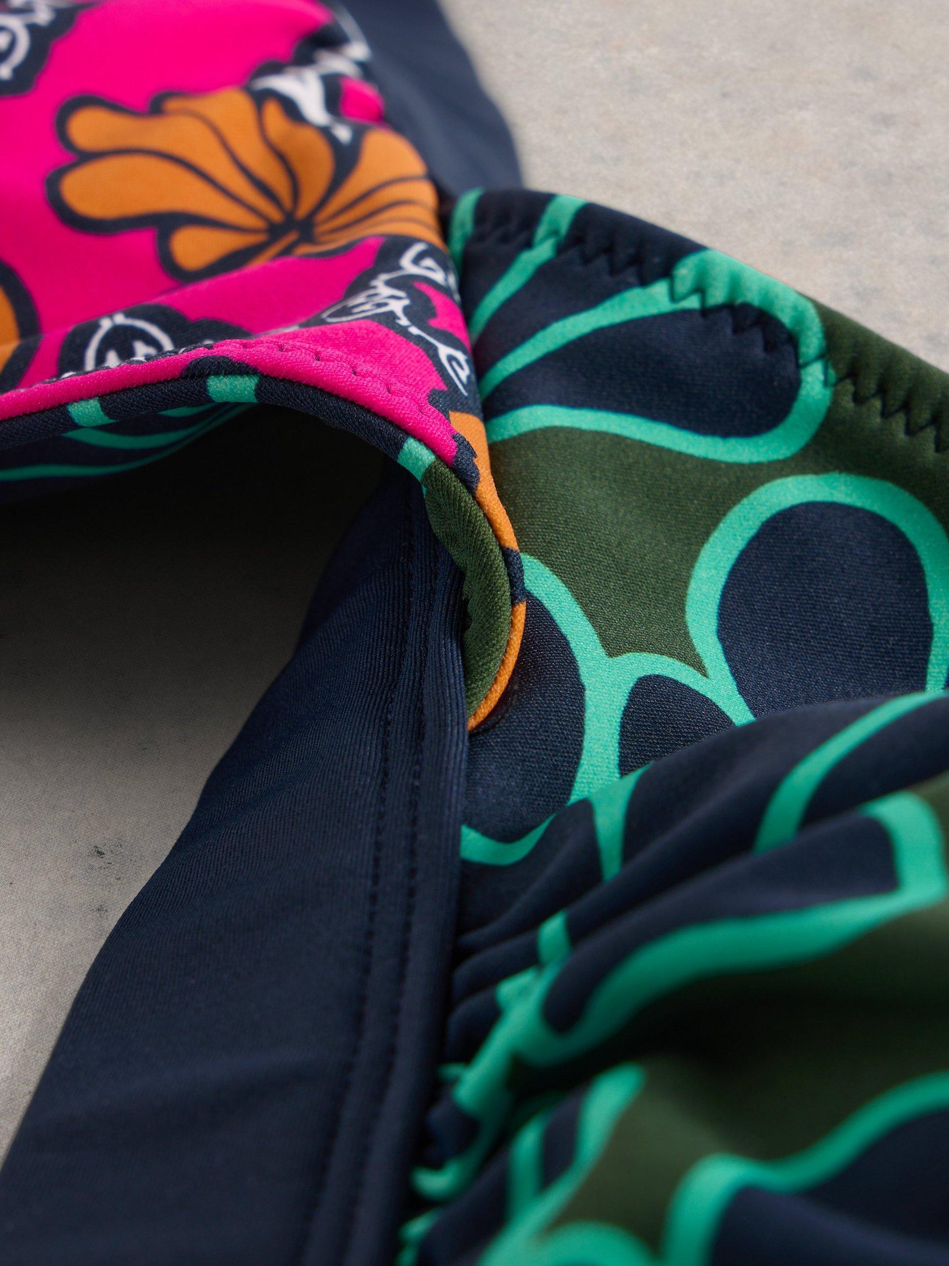 A reversible bikini top in recycled nylon.