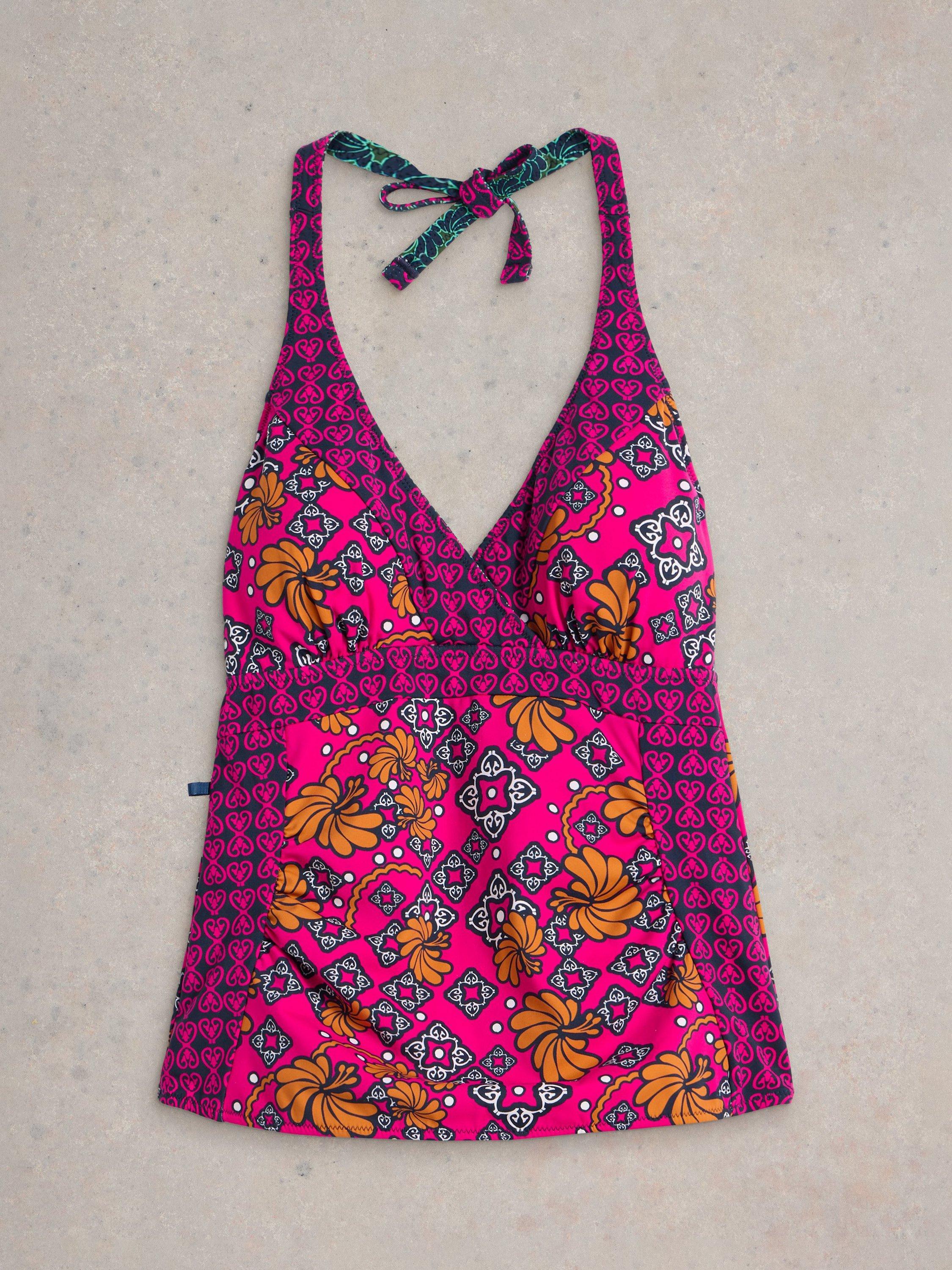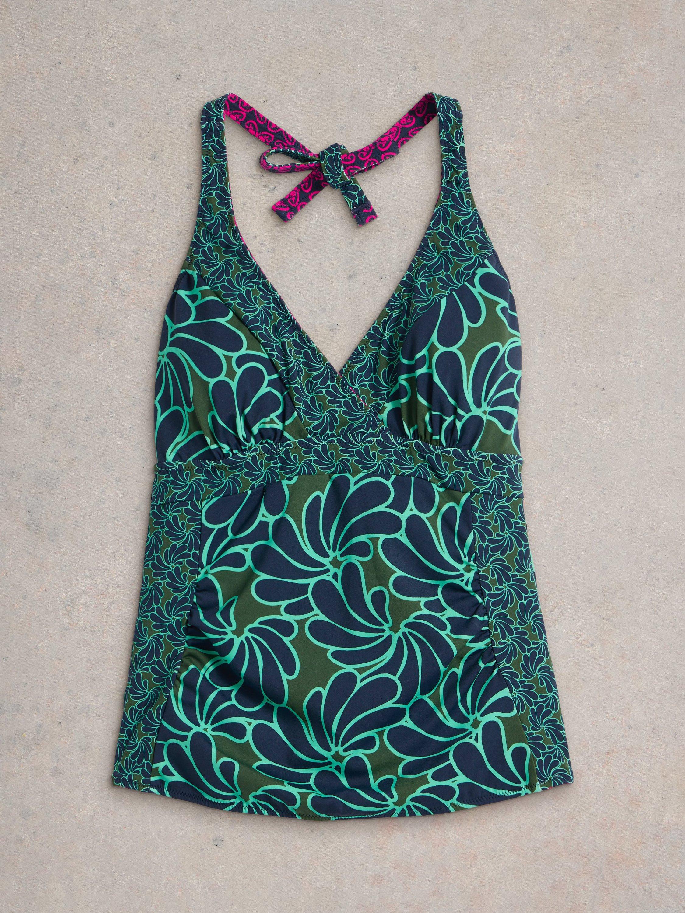 Printed with florals for a summery feel, this ruched reversible tankini top from White Stuff is designed with a flattering halter neckline. Team yours with the corresponding bottoms or mix and match with contrasting colours for a truly unique look.