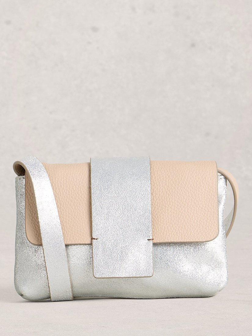 A landscape mini bag with maglock closure and eyelets along the strap. Use as a crossbody phone bag or attach as a waist belt for hands-free travel. Features an interior slip pocket.