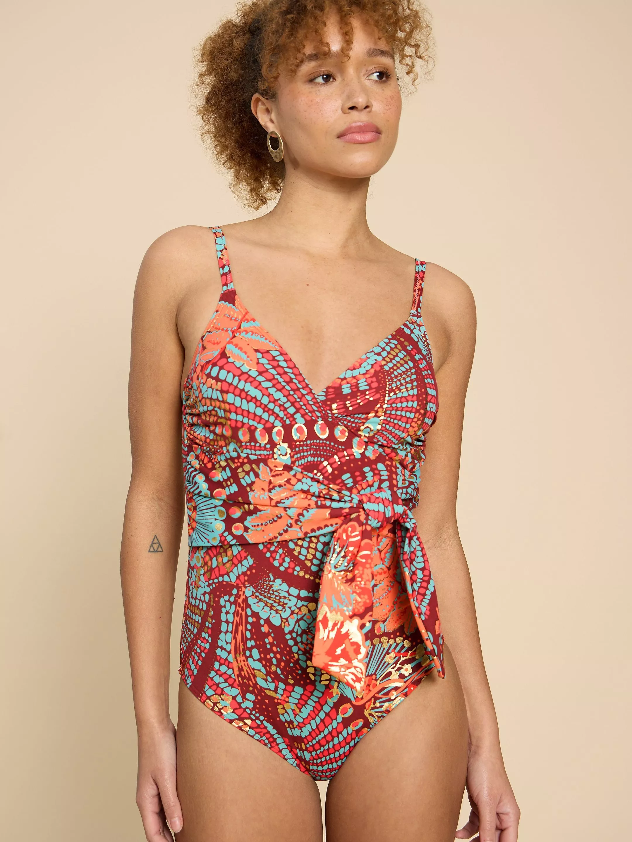 Cloaked in an abstract print that really shakes things up, this swimming costume from White Stuff is designed with a classic v-neckline and is sculpted with a low back.