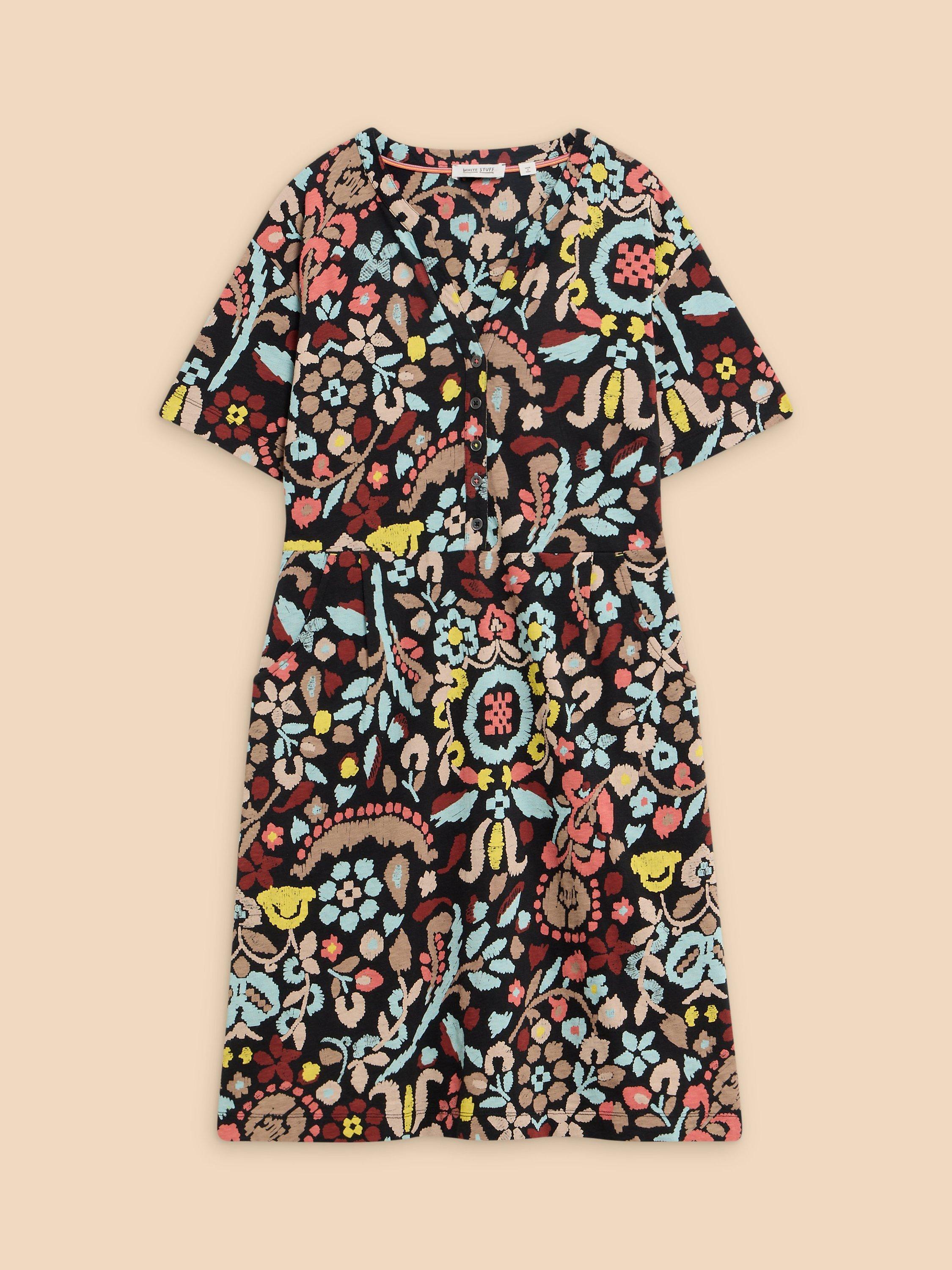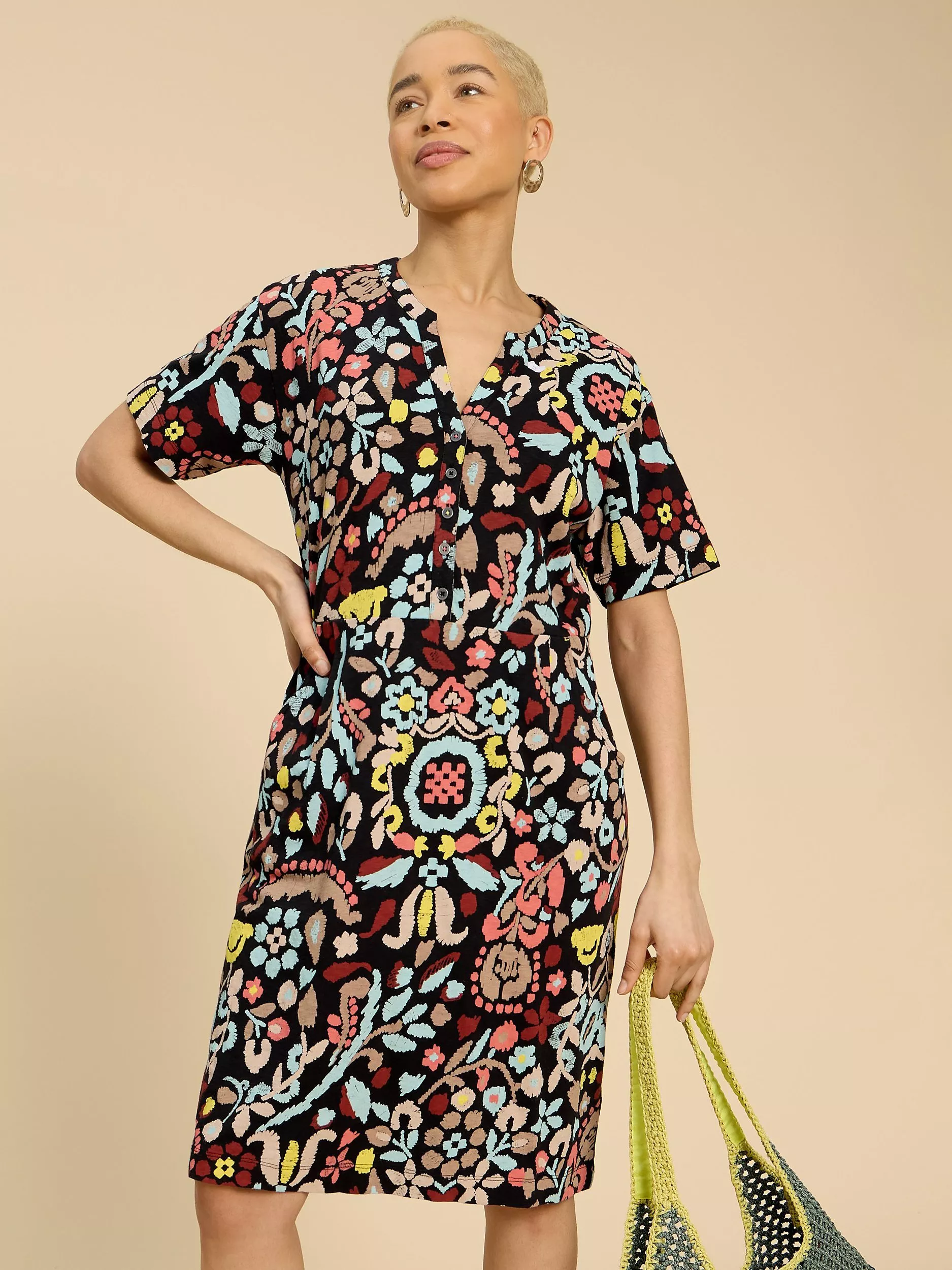 A masterclass in simplicity, this knee length dress from White Stuff is whisked up from the breeziest of fabrics. With a universally flattering v-neckline and elbow length sleeves, it blooms with joy through a refreshing floral print.