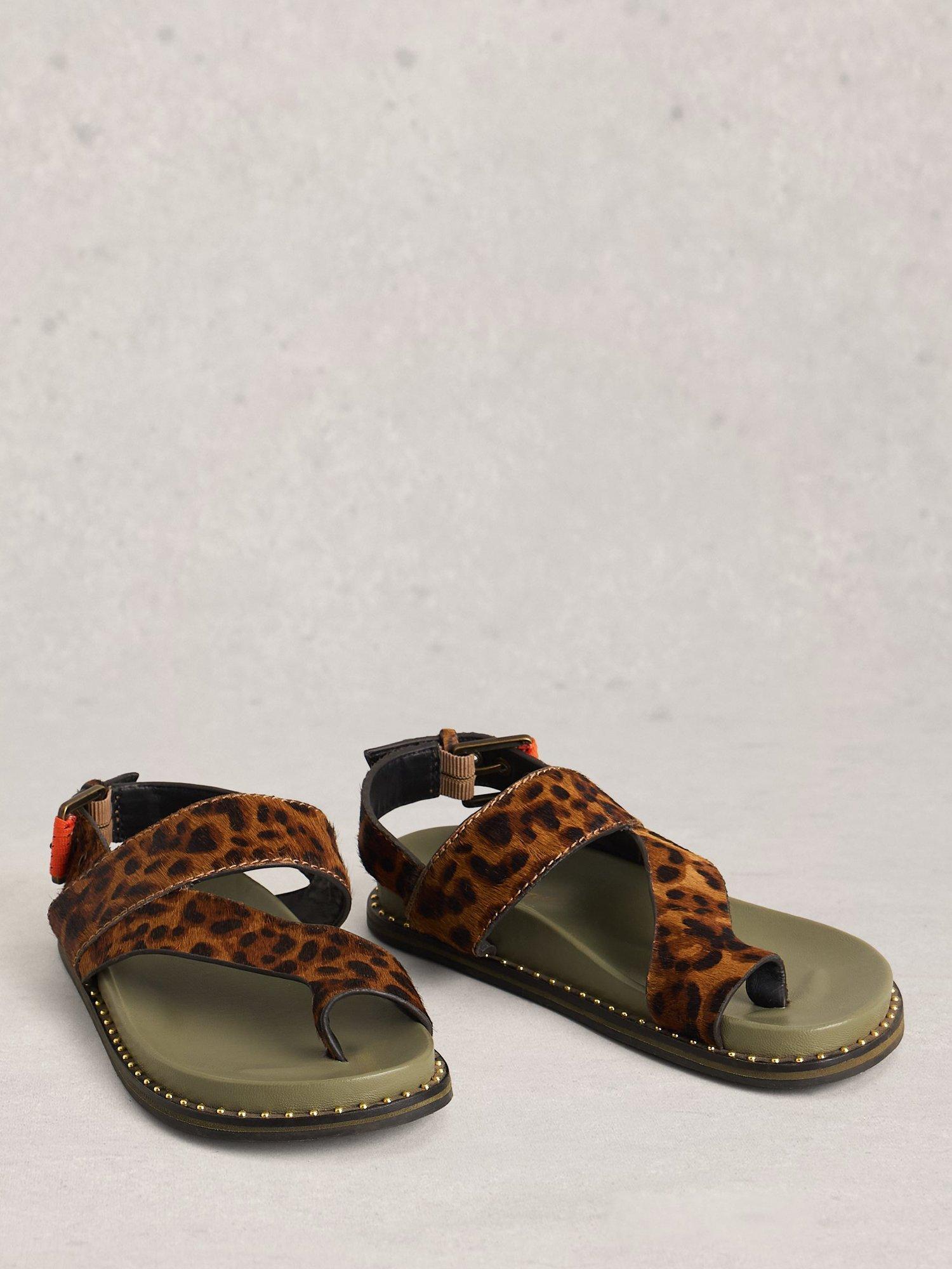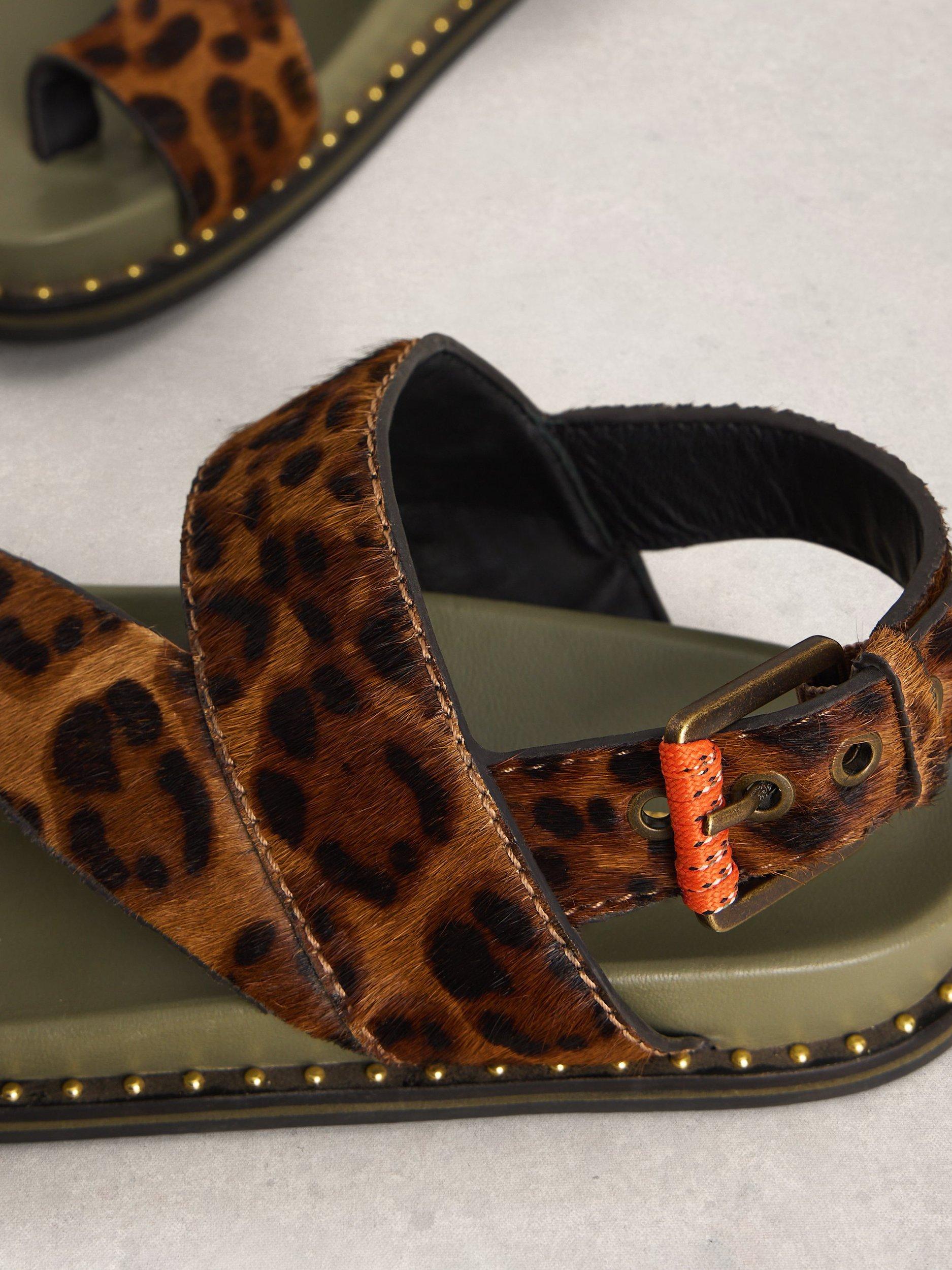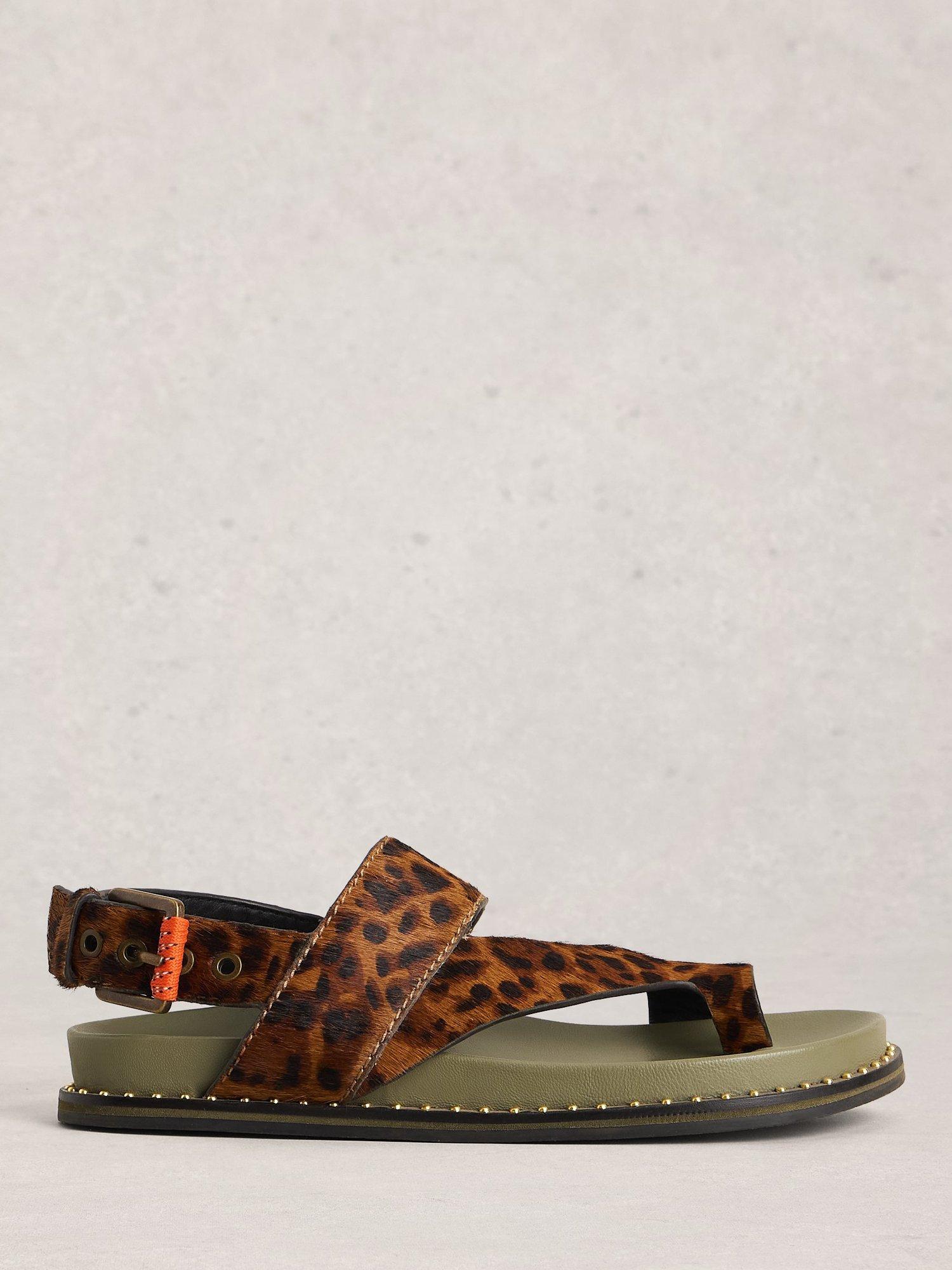 These footbed sandals by White Stuff are crafted from textured leopard print leather with an adjustable buckle fastening. A low 1cm flat heel and toe post offer comfort for daily wear, while open toes let you breeze through warm days effortlessly.