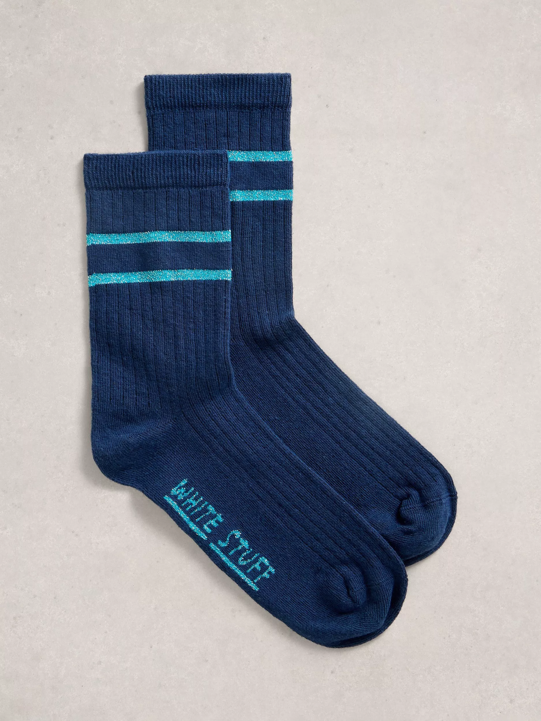 White StuffTextured Cotton Blend Crew Socks, Dark Navy