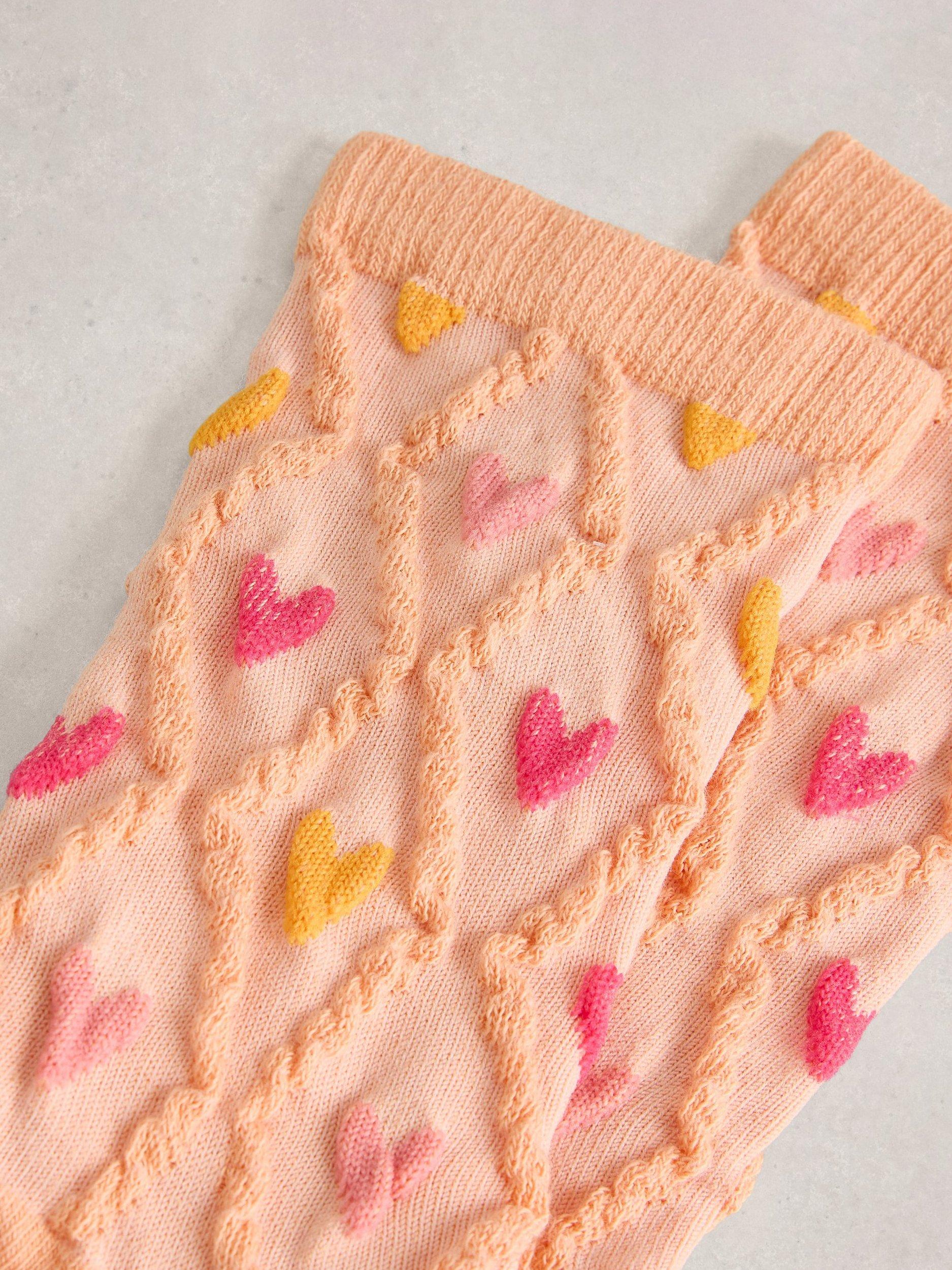 A pair of heart-patterned ankle socks, made from a soft, textured knit that keeps you comfortable all day.
