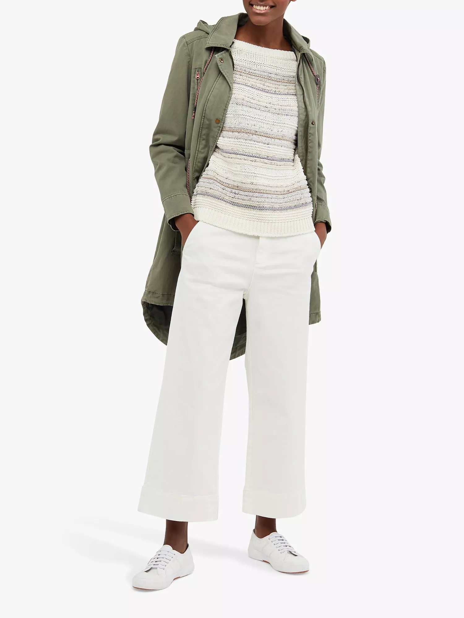 These trousers from White Stuff are cut to a comfortable wide leg shape and cropped to keep you cool. Smarter in design with slant slip pockets and neat welt pockets at the back, they sit mid-rise on the waist and fasten with a zip and horn button. Pair them with anything from a simple stripe top to a pretty blouse.