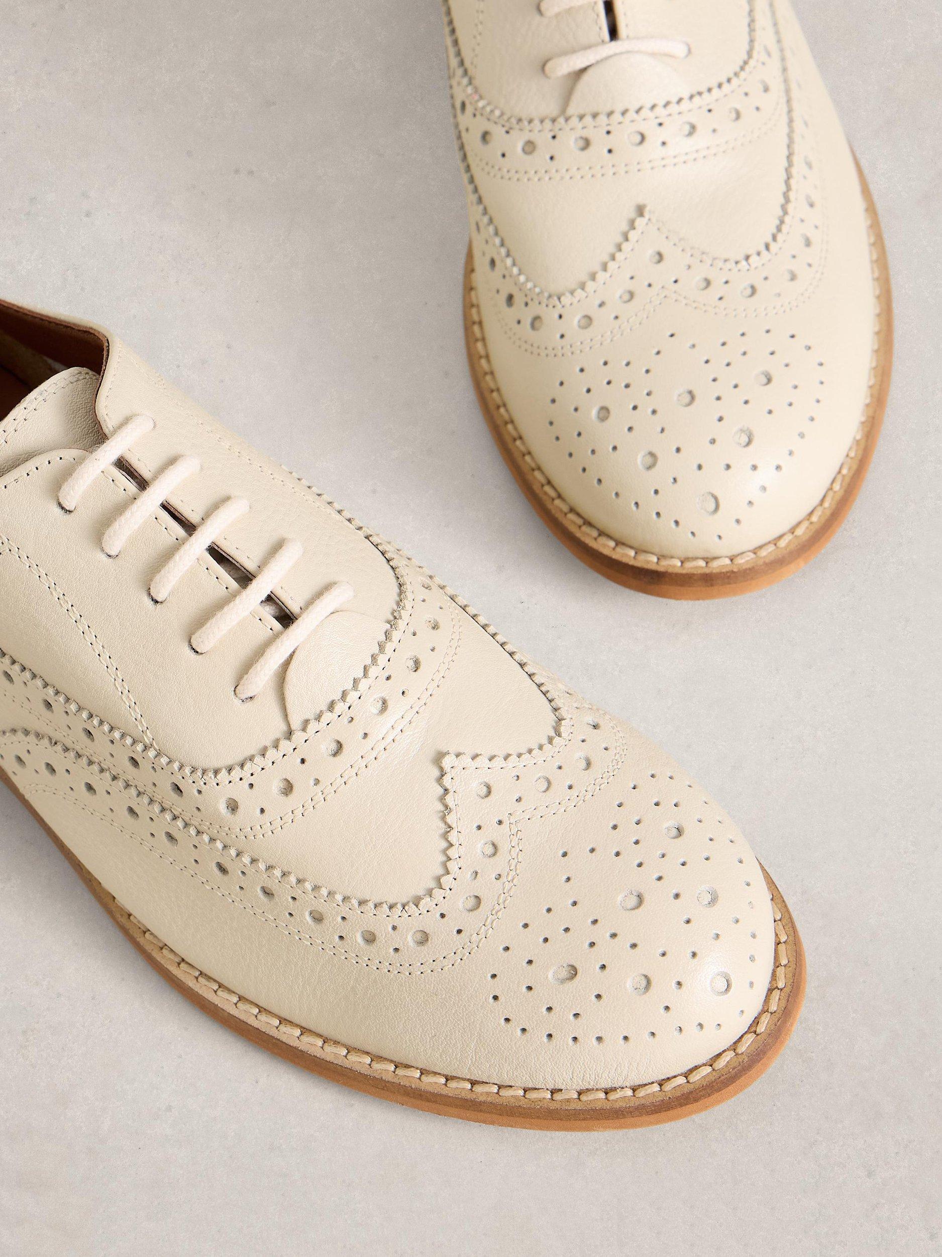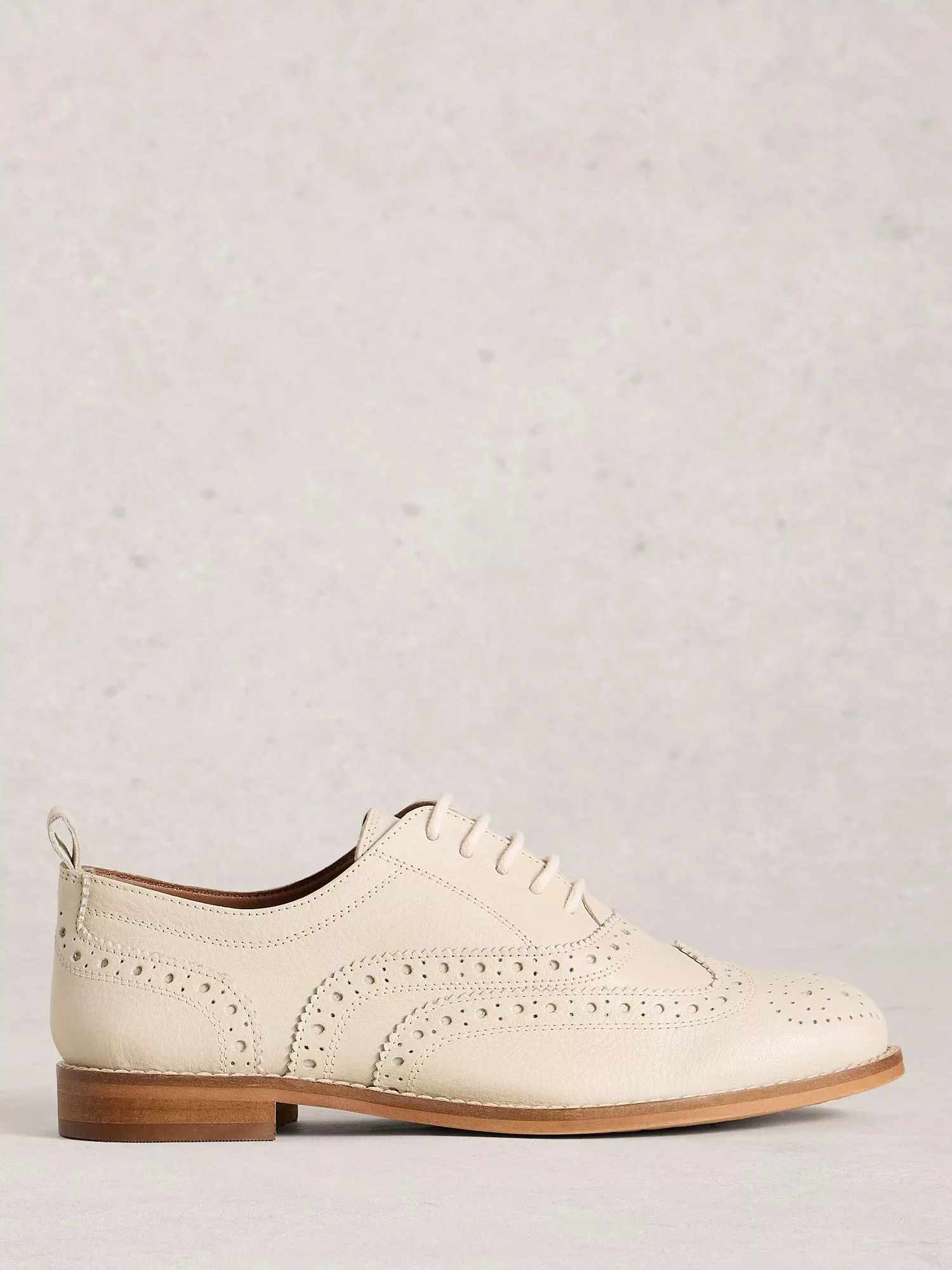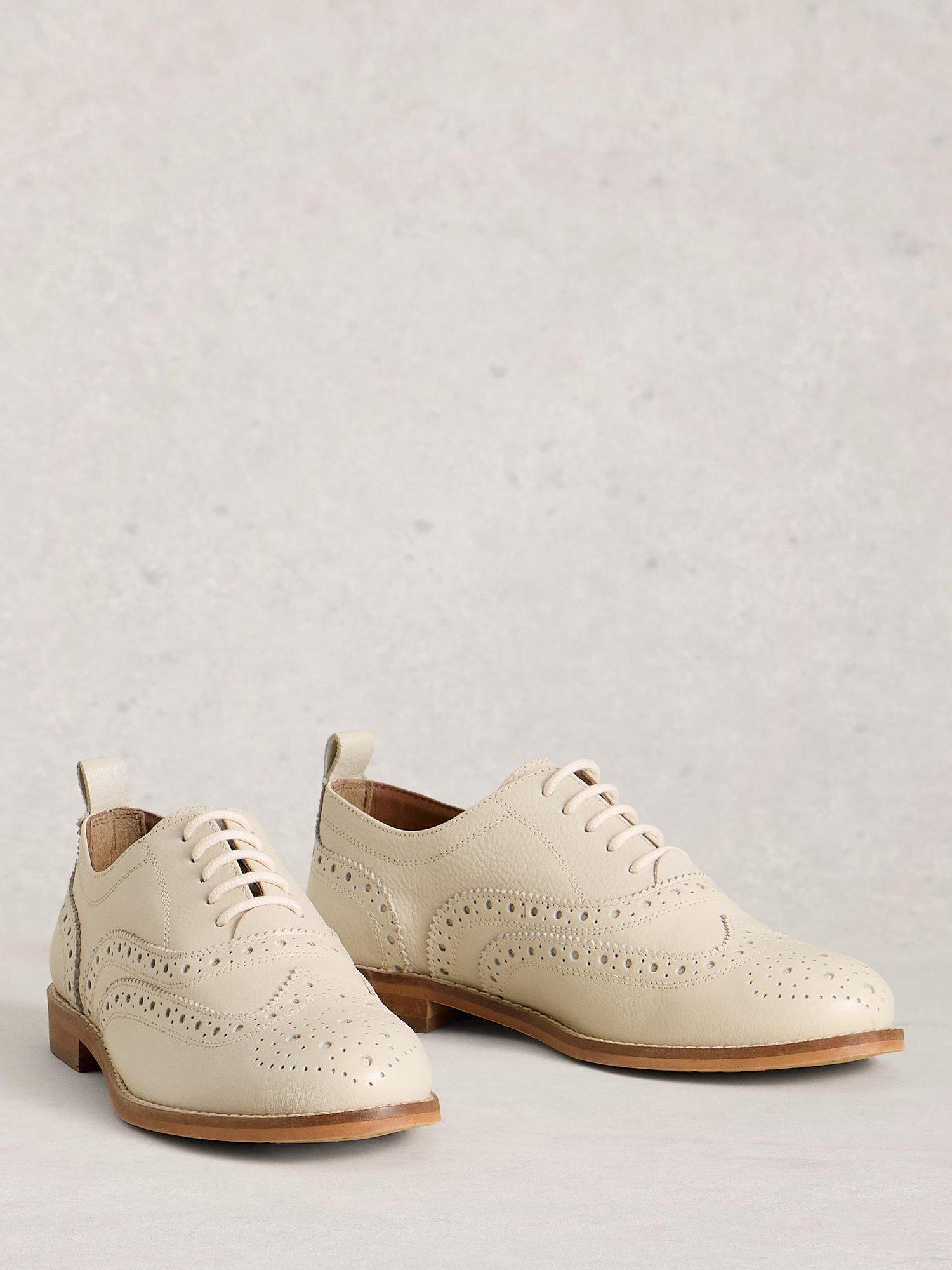 White Stuff leather brogues, featuring 5mm memory foam insoles, a round toe, lace-up fastening, and a sturdy low block heel for comfort.