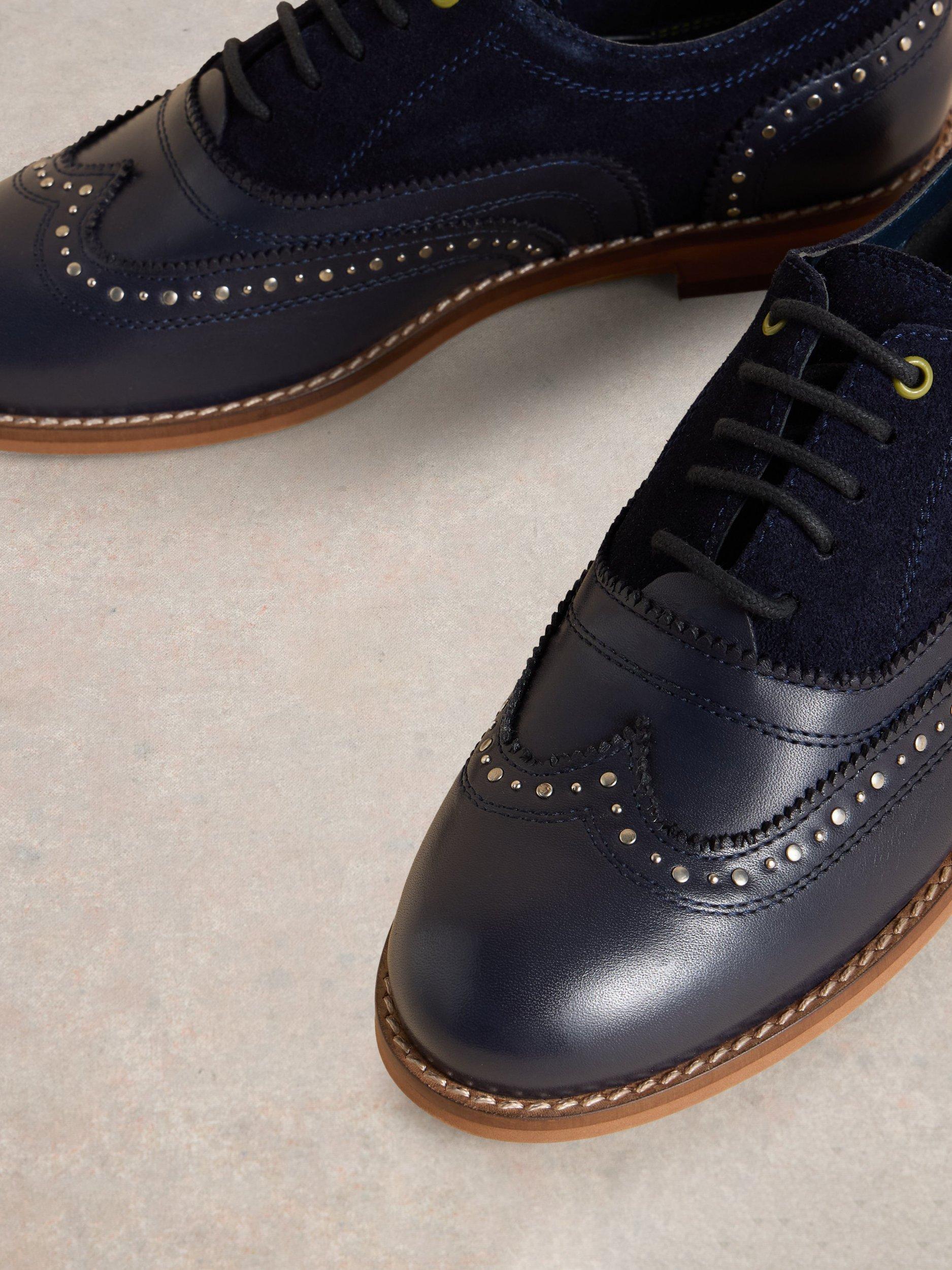 A new take on the favourite thistle brogue shoe, with studded lined on the upper for a jazzy modern feel. Features memory foam insoles and contrasting colour back tab.