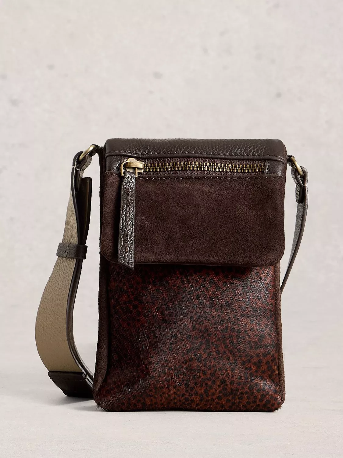 White StuffTiggy Pure Suede Phone Bag, Brown/Multi