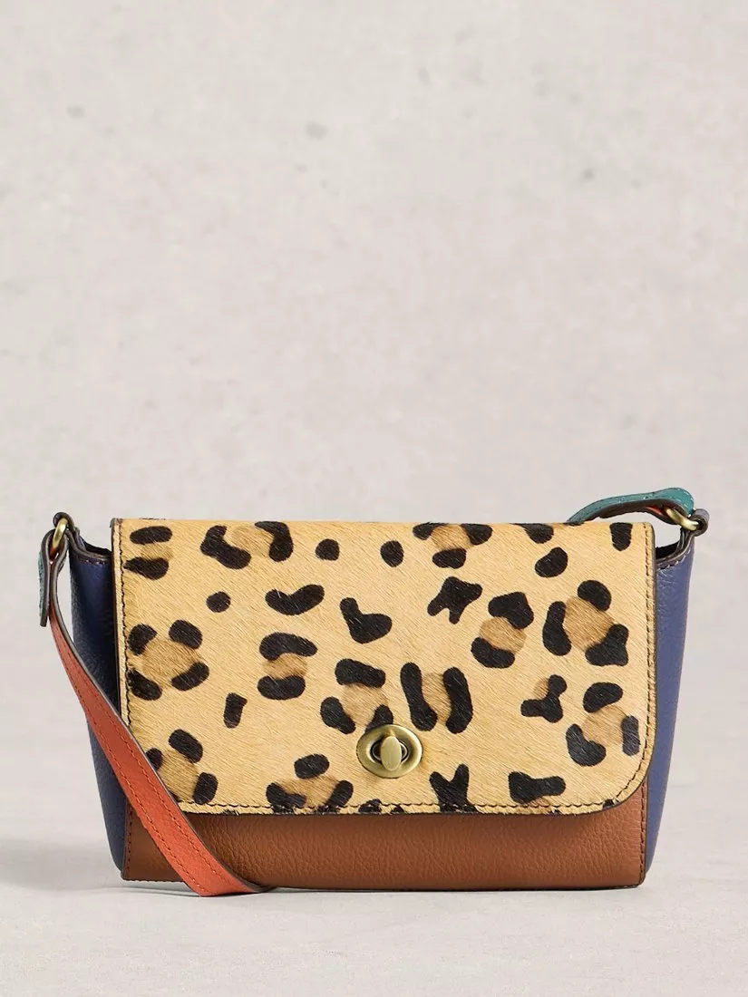 White StuffTilly Leather Leopard Print Crossbody Bag, Tan/Multi