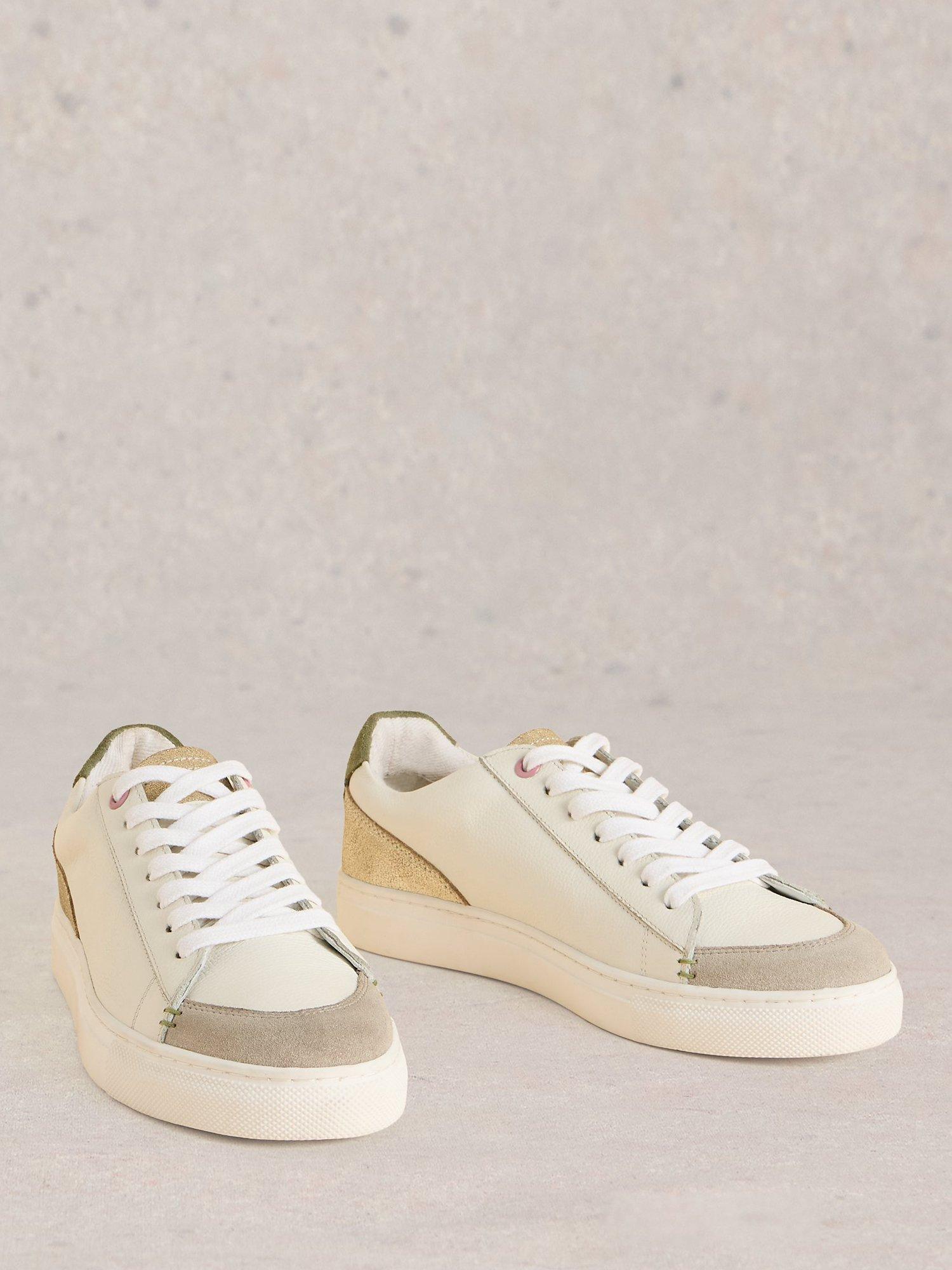 From White Stuff, this Toni style is a classic leather lace-up trainer with hand stitching and white soles.