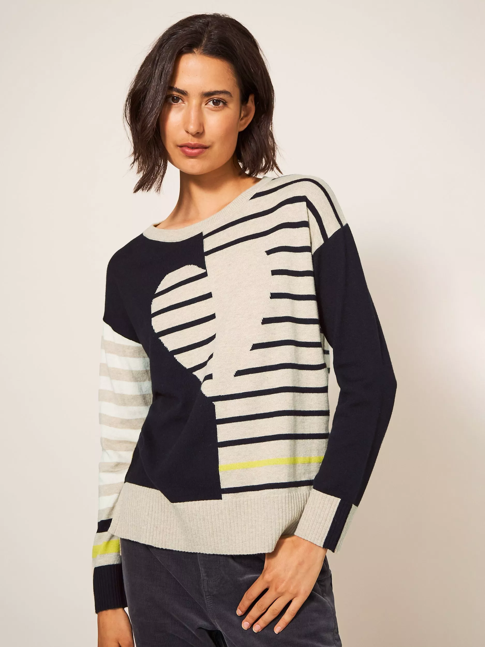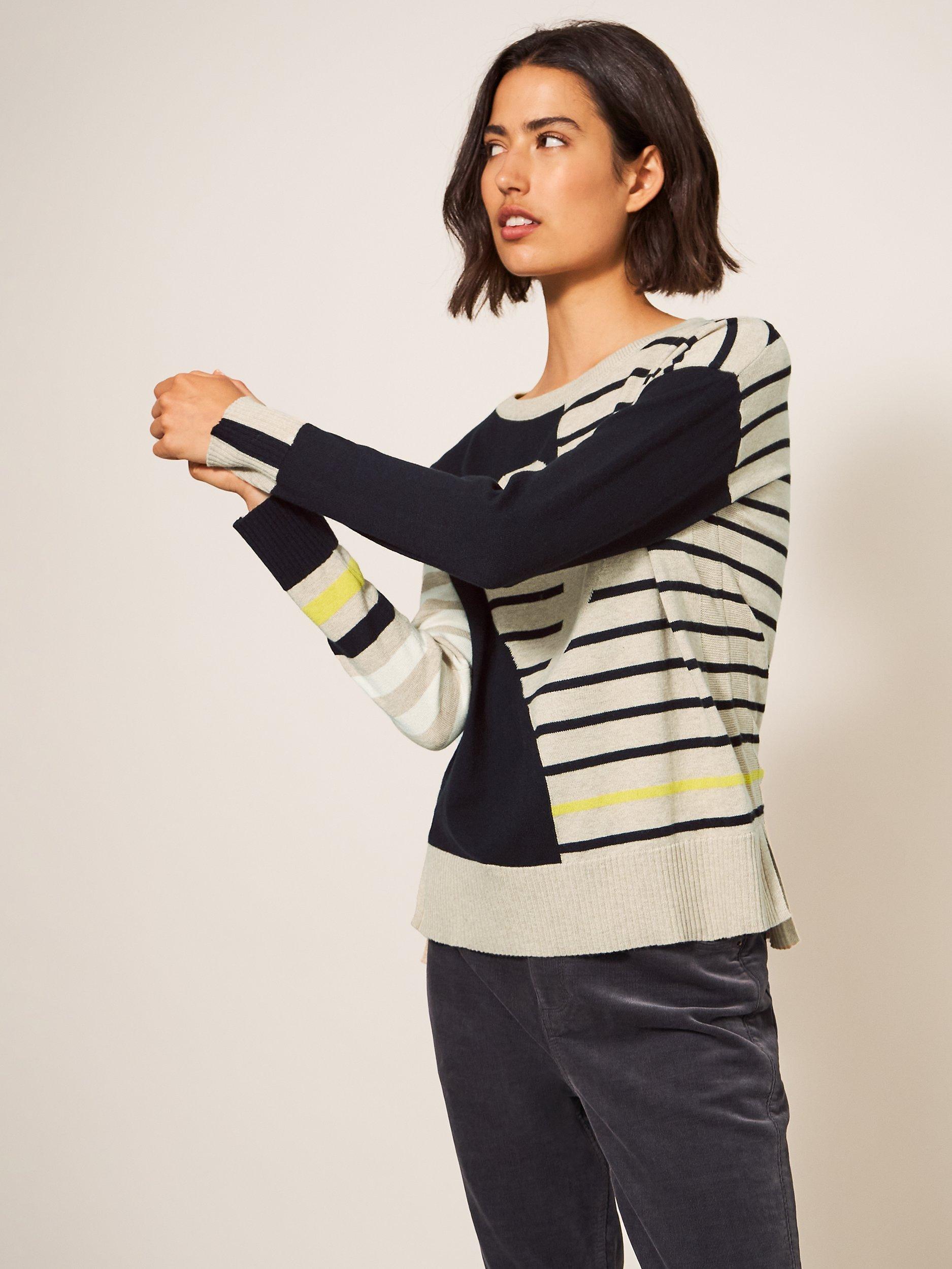 Sitting at the neck with a softly-sculpted scoop, this lightweight jumper by White Stuff makes for a striking piece with colour-block stripes and makes for soft wear in a rich cotton blend.