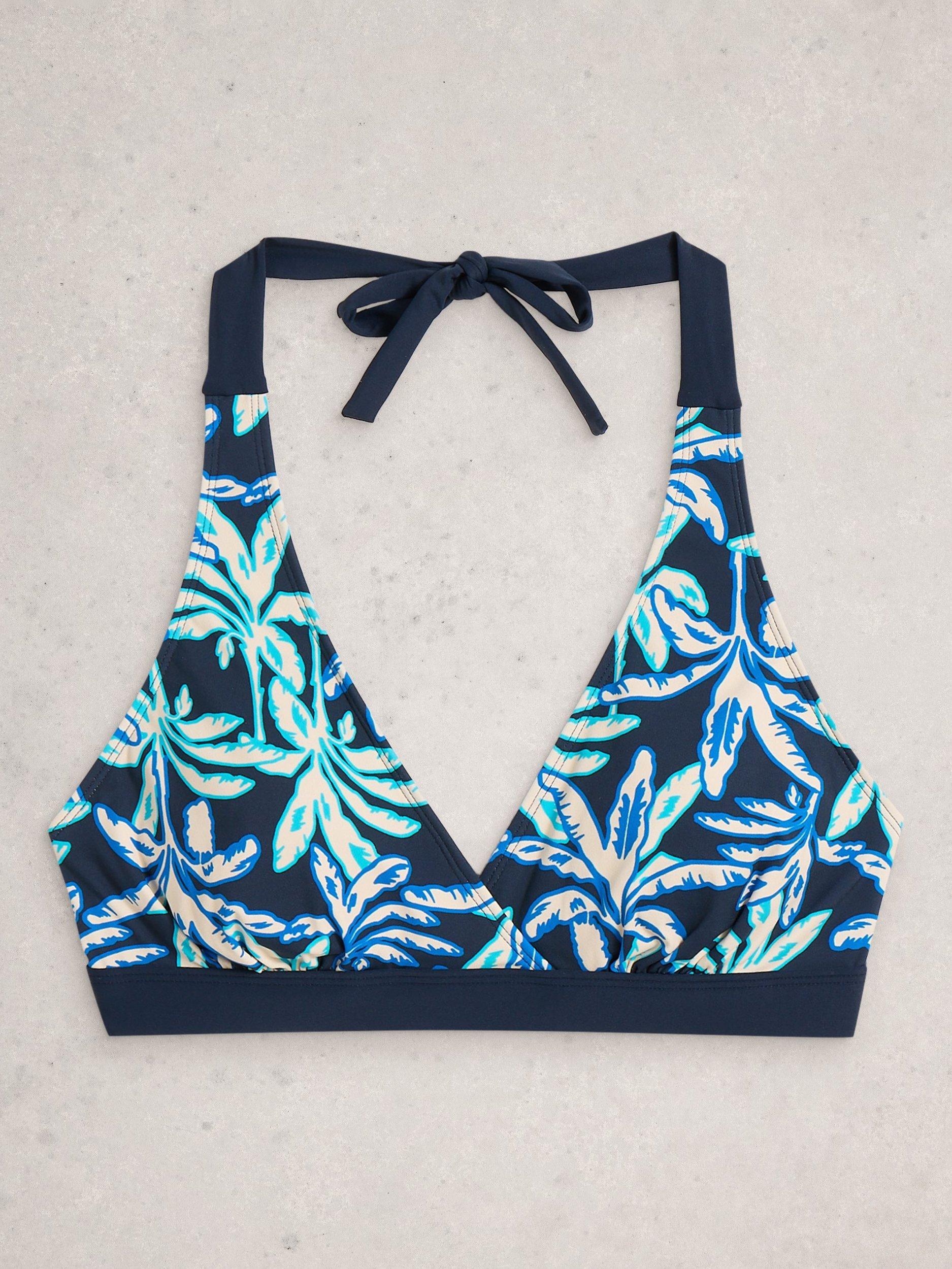A flower power printed bikini top.
